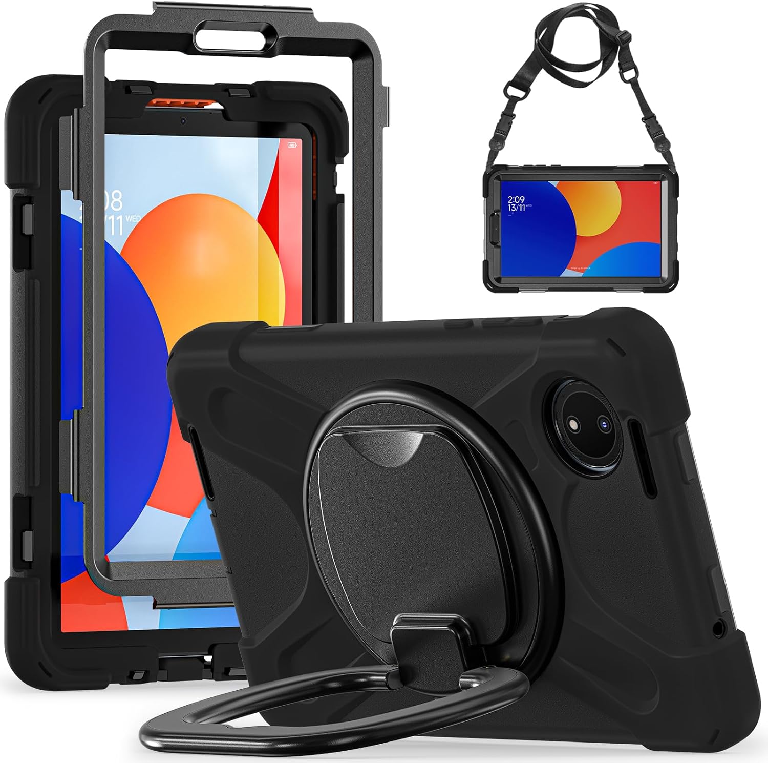 Protect and enhance your tablet experience with this versatile case, designed for Redmi Pad SE 8.7.Combining durability and smart features, this case is perfect for students, families, and professionals. Superior Full-Body ProtectionKeep your tablet safe from drops, scratches, and impacts with its dual-layer design. Reinforced corners and raised edges protect the screen and camera from damage in any environment. Hands-Free Versatility with Straps- 360° Rotatable Kickstand: Multiple angles for typing, streaming, or studying- Adjustable Hand Strap: Secure grip for one-handed use- Detachable Shoulder Strap: Easy carrying during travel or commutes Precise Cutouts and Dust ProtectionTailored for Redmi Pad SE 8.7, ensuring easy access to ports, buttons, and speakers. The built-in dust plug keeps your charging port clean and debris-free. Family-Friendly and Lightweight DesignWith an anti-slip grip and ergonomic build, this case is easy for kids to handle. Lightweight yet sturdy, it’s perfect for school, work, and travel. Why Choose This Case?- Shockproof dual-layer design with reinforced corners- 360° kickstand and adjustable hand strap for convenience- Built-in dust plug for lasting port protection- Lightweight and family-friendly for versatile use Upgrade your tablet protection today with this thoughtfully designed case!Only compatible with Redmi Pad SE 8.7-inch tablet. Not suitable for other sizes. Please confirm your tablet model before purchase.