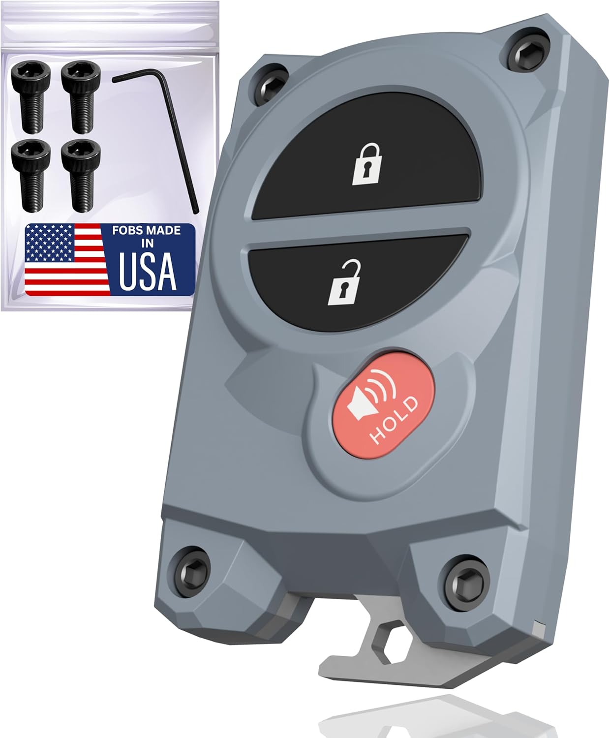 | Included Components | Key Fob Case, 4 Screws, Allen Key, Bottle Opener, Instructions |