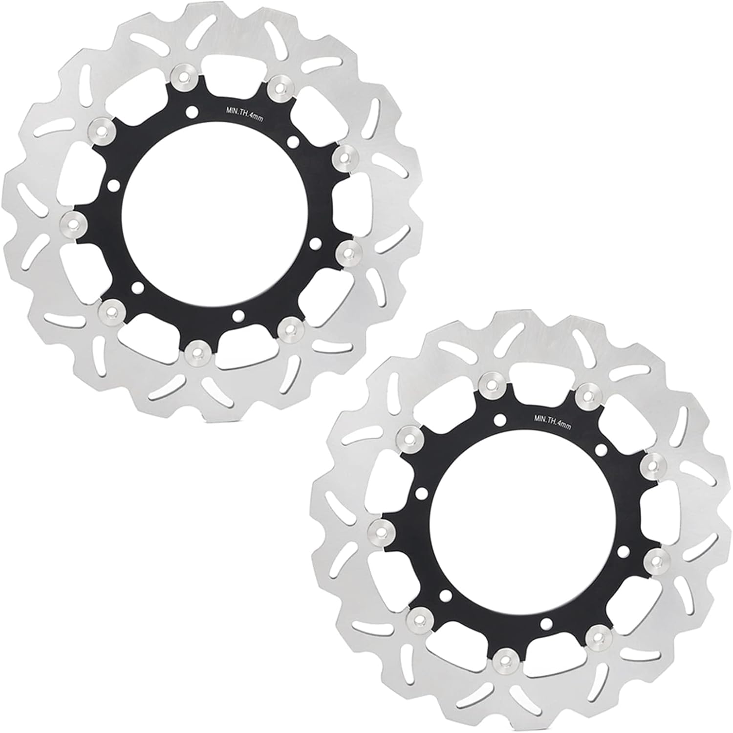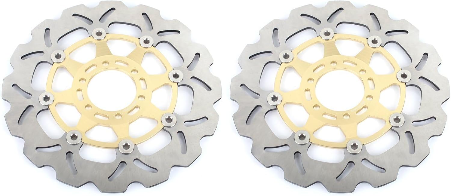 Fit for Yamaha FZ1 1000CC model year 2006-2014 FZ1 ABS A / V-Z,A,B RP16 2006-2014 FZ1 FAZER 1000CC model year 2006-2012 FZ1 FAZER ABS 1000CC model year 2007-2012 YZF R1 (RN11/e13/0074) 1000CC model year 2004-2005 YZF R1 1000CC model year 2006 YZF R1 1000CC model year 2015 - UP FZ1 N N / V-Z,A,B RN16 2006-2012 FZ1 N ABS NA / V-Z,A,B RN16 2006 - 2012 FZ1 S F/Disc 320 OD S / V-Z,A,B RN16 2006 - 20120040 2006 - 2012 YZF R6 2017- and up Quantity:2 pcs Floating Front Brake Disc Rotors Material: Stainless Steel 420 (2Cr13) + Aluminum alloy 6061. Offers robust and dependable braking force. Compatible with all varieties of brake pads. The design of the disc promotes effective heat dissipation during intense braking episodes,thereby mitigating brake fade, curtailing warping, and ensuring an extended lifespan for the rotor.