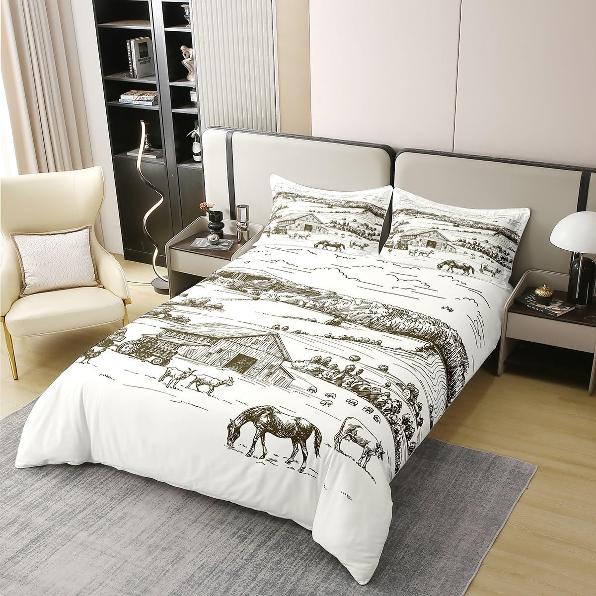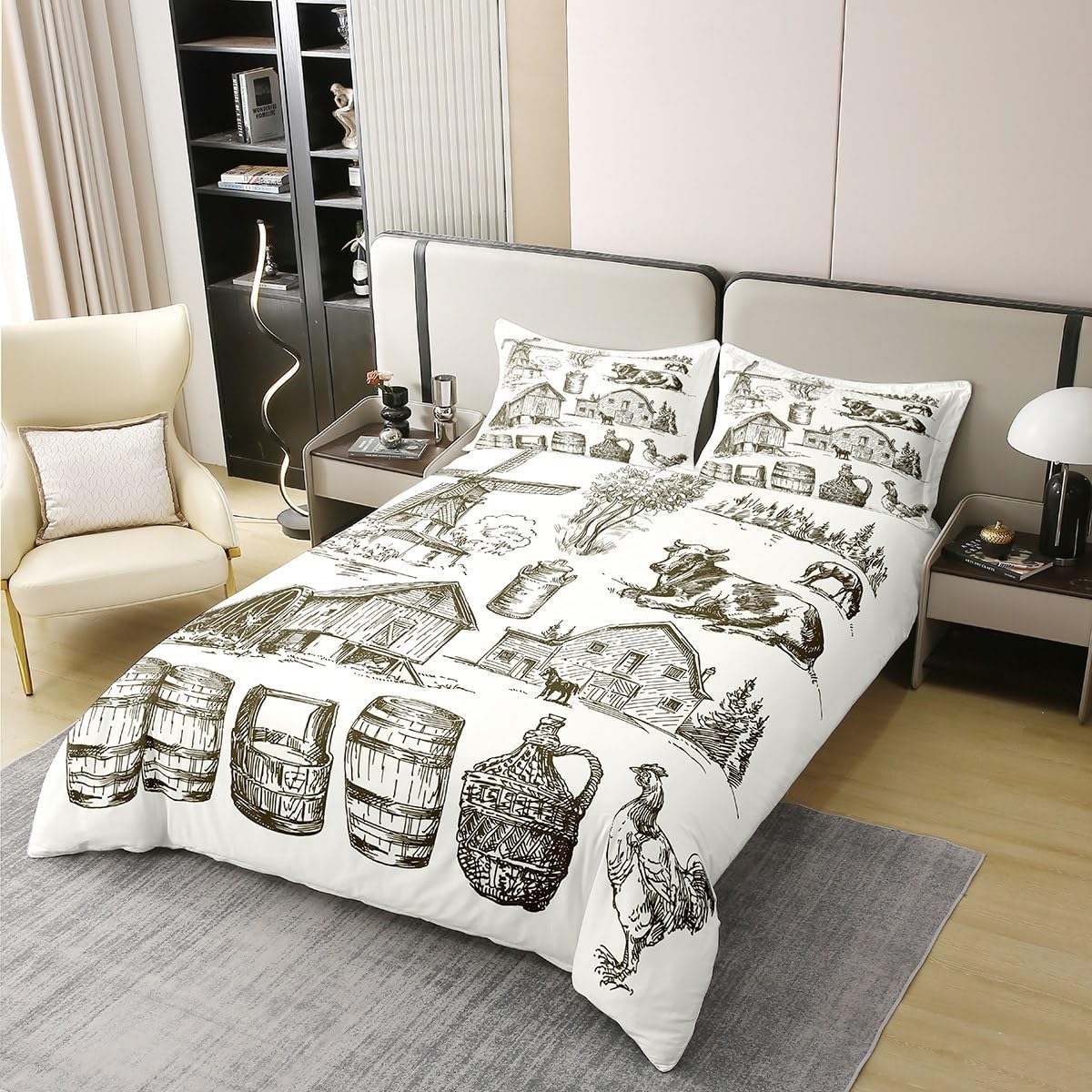 Package Include: Duvet Cover and Pillowcase, no comforter or sheet Quality duvet cover set pattern bedding set, simply decorating your rooms any time you want, bringing you fresh feel for year round use Material: Made from 100% Cotton Size Information: Twin size 2pcs duvet cover set: 1 Duvet Cover 68" x 90" 173 x 229cm, 1 pillowcase 20" x 30" 51x75cm Full size 3pcs duvet cover set: 1 Duvet Cover 80" x 90" 200 x 229cm, 2 pillowcase 20" x 30" 51 x 75cm Queen size 3pcs duvet cover set: 1 Duvet Cover 90" x 90" 229 x 229cm, 2 pillowcase 20" x 30" 51 x 75cm King size 3pcs duvet cover set: 1 Duvet Cover 104" x 90" 264 x 229cm, 2 pillowcase 20" x 36" 51 x 92cm Personalize your bedroom: Beautiful design and colorful print, making your bedroom unique and bringing you a wonderful dream Washing instructions: Machine wash separately in cold water, hang dry, do not bleach Occasion: The cute soft duvet cover bedding sets designed for children, adults, men, women, teens. This duvet cover set is also suitable for all seasons, spring, summer, autumn and winter. Warm Tips: There may be some slight differences between the color tone of the pictures and that of the actual items due to lighting effects, monitor's brightness, etc.