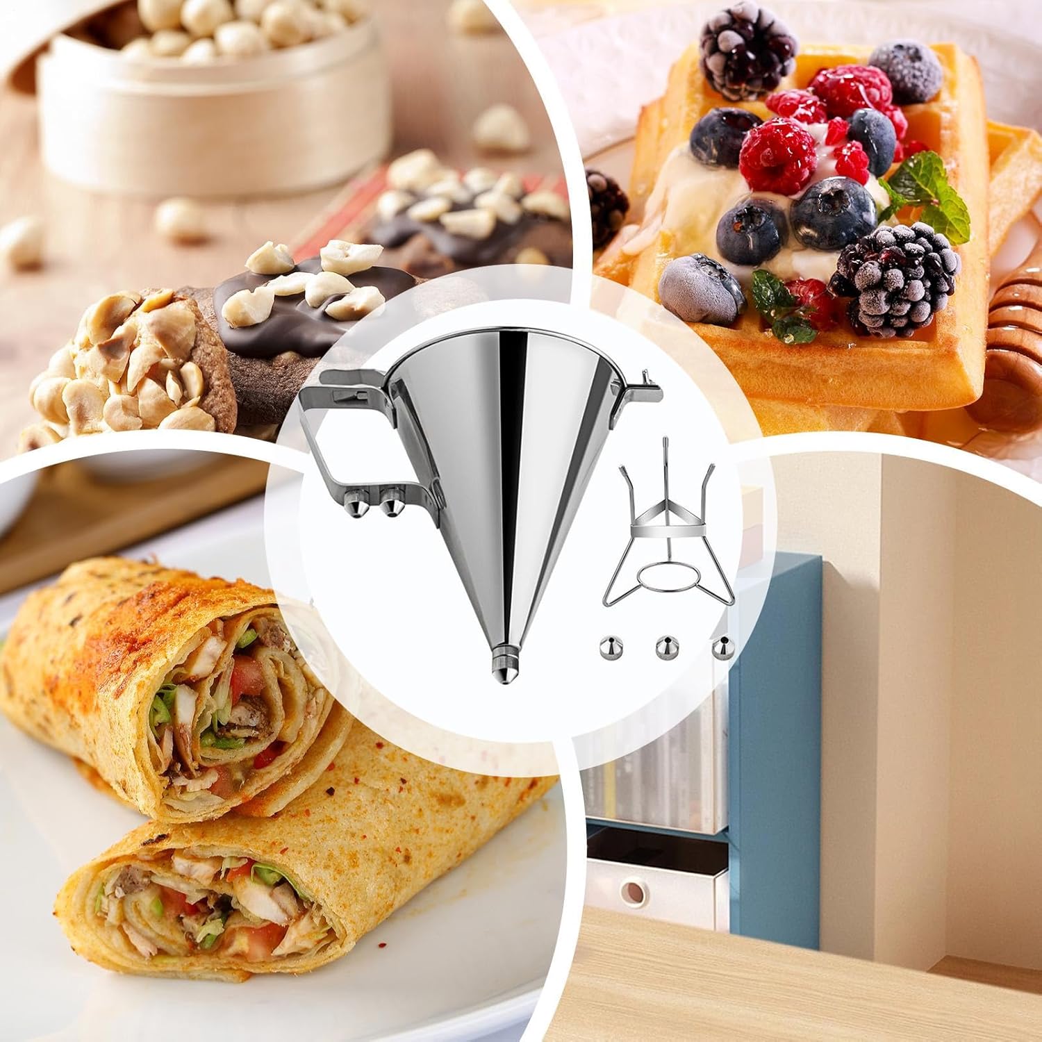 The Pastry Making Dispenser is a vital tool for efficient kitchen and cooking operations, designed to streamline the process of pouring batters with precision. Featuring a generous 1800ml capacity, this dispenser is constructed from durable stainless steel, ensuring longevity and resistance to wear in both home and commercial settings. Its integrated funnel design simplifies the preparation of pancakes, cupcakes, pastries, and more, making it versatile for restaurant or dining use.SpecificationMaterial: stainless steelProduct List:1* Funnel Cake DispenserNote:Due to different lighting and screen settings, the item color may be slightly different from the picture.Due to different manual measurements, please allow a 1-2cm difference in size.