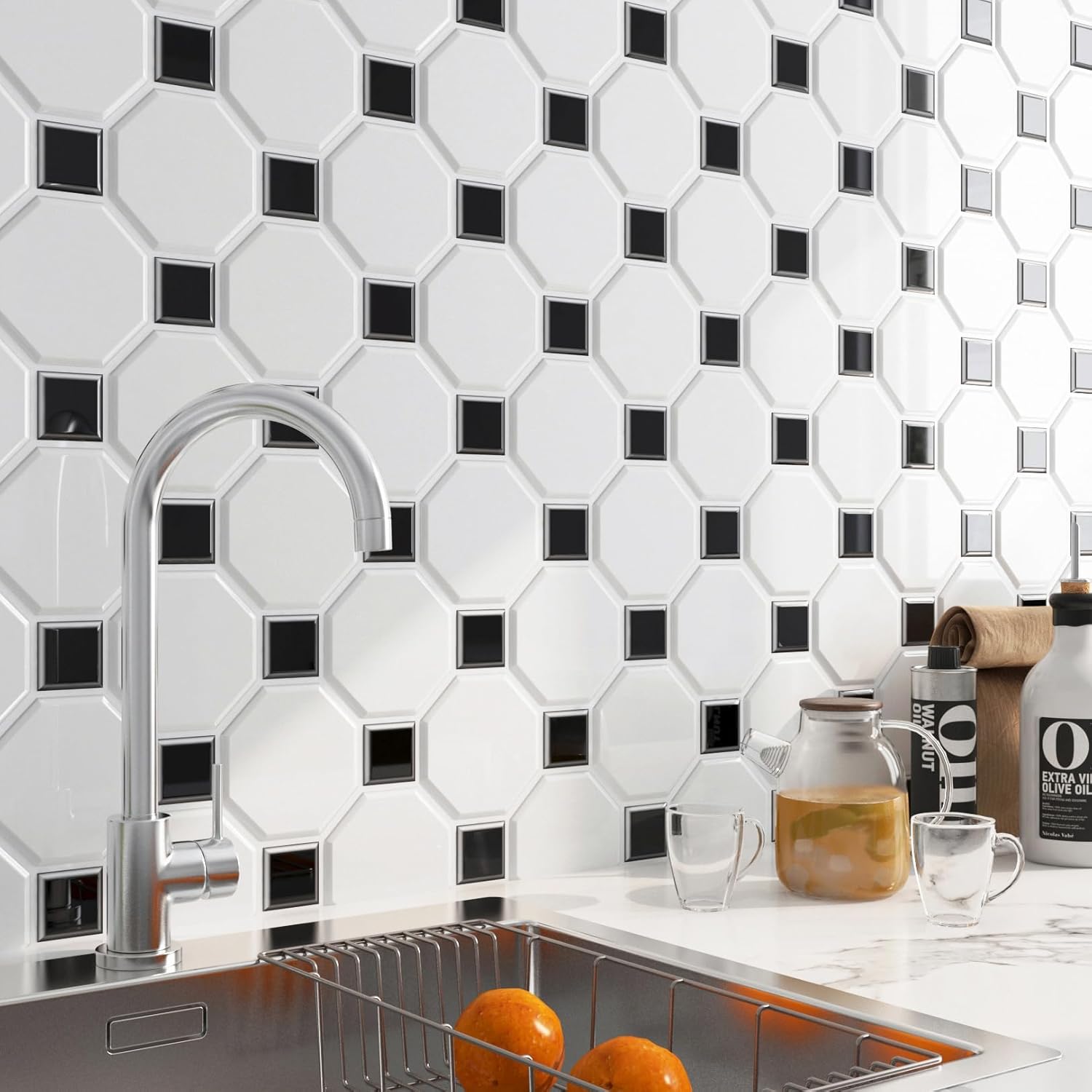 | Style Name | Black and White Square Hexagon Peel and Stick Tile Backsplash |