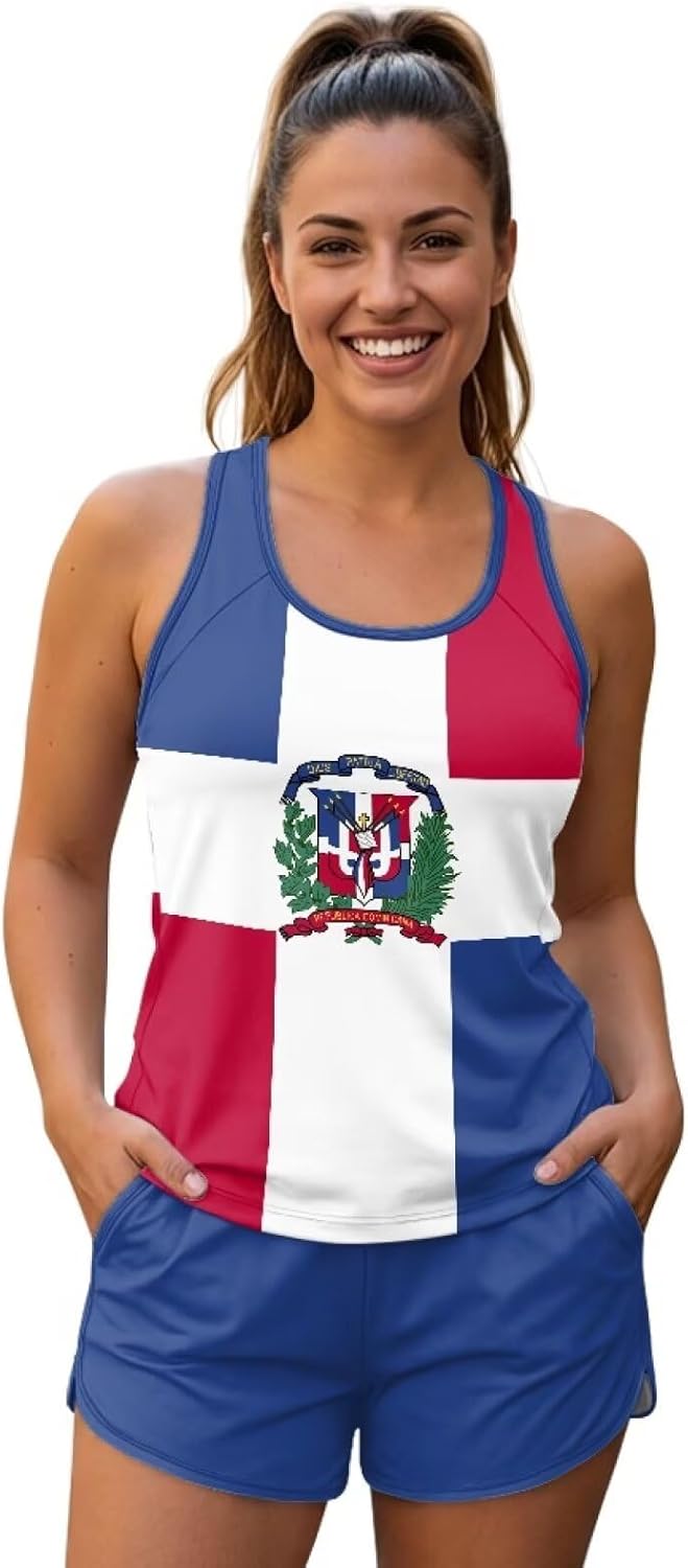 This women's 2-piece swimsuit set is designed for sports, swimming, and casual vacations, perfectly blending style with comfort. The top features a sleeveless racerback tank style with a round neckline and an open-back racerback cutout, offering breathability, non-restrictive shoulders, and excellent freedom of movement. Made from quick-dry, stretchy fabric.The bottom consists of high-waisted swim shorts with a moderate inseam, featuring an adjustable drawstring for a secure, non-binding fit that conforms to your waist.Practical side pockets offer convenient storage for small items,while the side slits at the hem enhance mobility, making this set suitable for various occasions. With an overall casual, sporty, yet modest and figure-flattering aesthetic, this set is ideal for women who prefer two-piece designs, prioritize comfort, and seek coverage. It accommodates a variety of body types and is available in a full size range from S to 6XL. Key Features Material: Polyester + Spandex swimwear fabric, offering stretch, breathability, quick-dry capability, and a close-to-body fit Top: Racerback tank style with round neck, sleeveless design, open-back cutout, and built-in removable padded cups Bottom: High-waisted swim shorts with adjustable drawstring, side pockets, and slitted hem Design: Two-piece set with a modest, slimming cut that covers hips and thighs, preventing unwanted exposure Occasions: Suitable for swimming, sports, vacations, and everyday casual wear Size Range: S-6XL, designed for different body shapes Target Audience This swimsuit is for women who love two-piece styles and seek comfortable, modest designs. It is especially suited for those concerned about exposure, desiring a slimming look with freedom of movement, and is inclusive of plus sizes