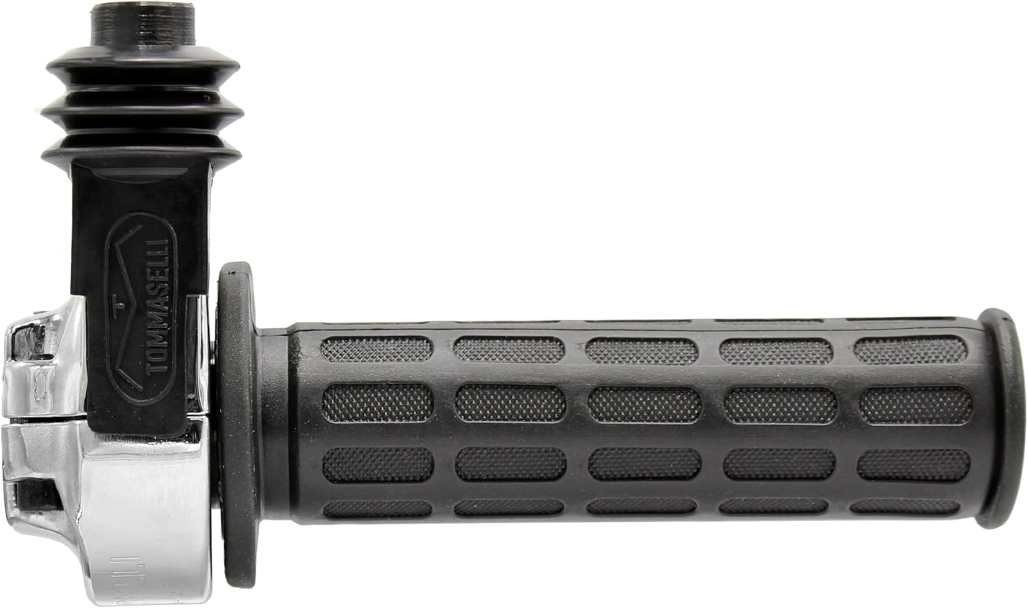 The Domino Racing Daytona Twin Pull Throttle Controller pulls two cables simultaneously. This is sometimes referred to as a “dual pull”. The Daytona throttle works for many models, but may require custom cables to adapt to your project. The Domino Racing Daytona is a classic throttle controller for your custom/vintage project! The quickness rate is 3.4⁰ of throttle tube rotation per mm of cable travel, with a maximum cable pull range of 45mm. The Daytona housing is cast aluminum and available in painted black or chrome plated finishes. Black Domino Racing grips with closed ends are included. Domino takes great pride in the development and production of its motorcycle throttle controls. So much so that Domino is the OEM (stock) throttle system on more European motorcycles than any other brand! No corners are cut in material or procedure. No parts are outsourced. When you see the product – when you feel the product – when you use the product – you will understand and appreciate that behind every throttle stands the proud Italian craftsmen of Domino/Tommaselli SPA.