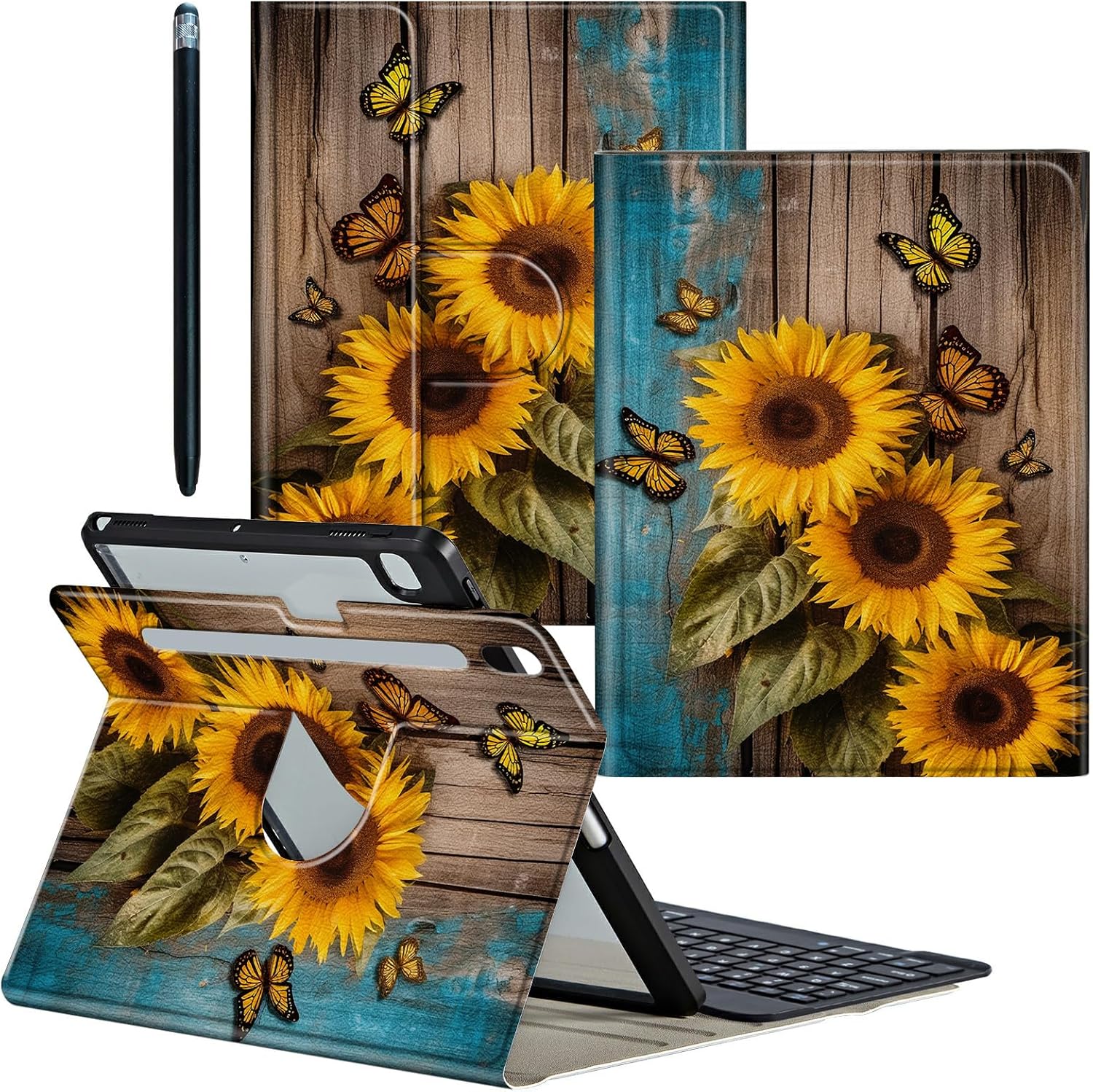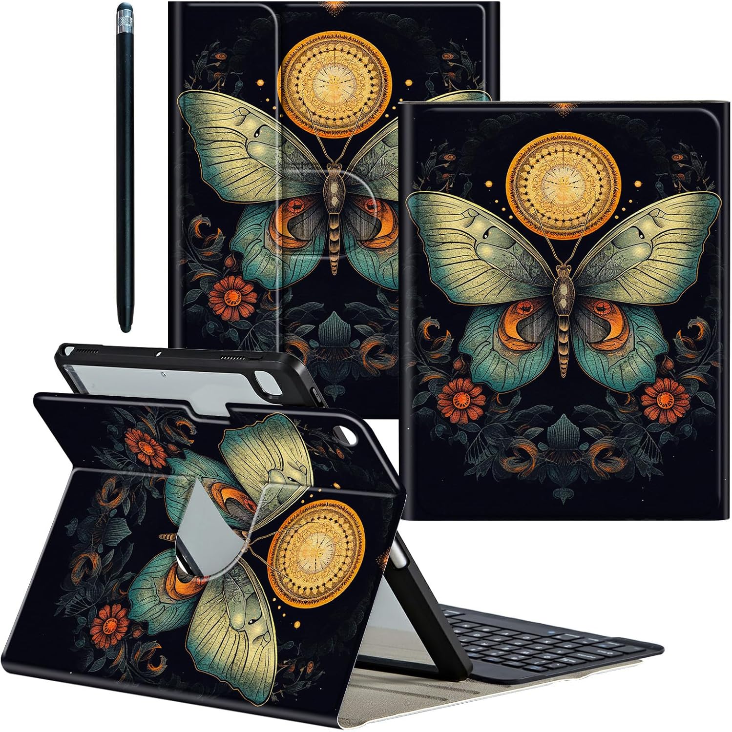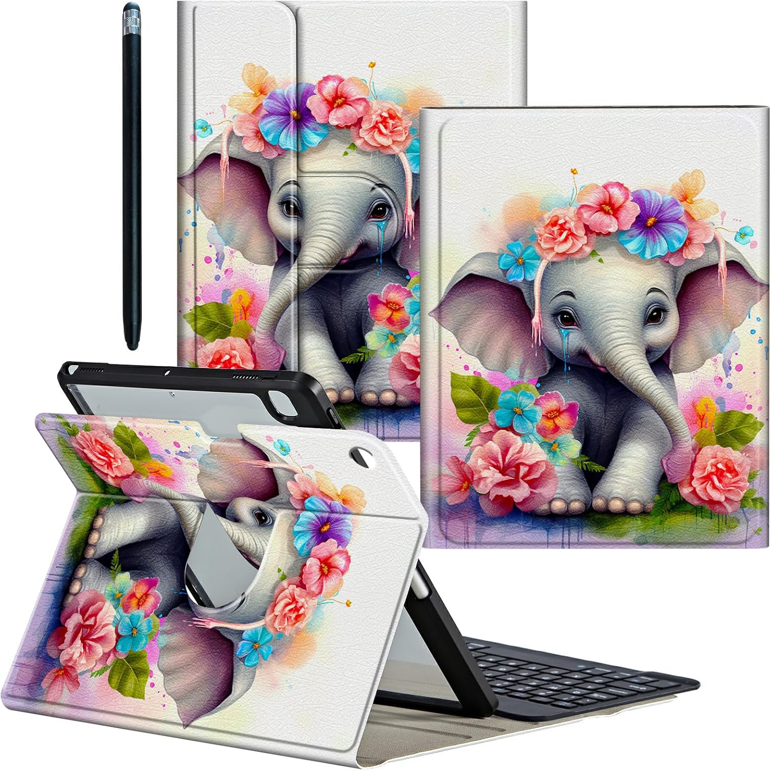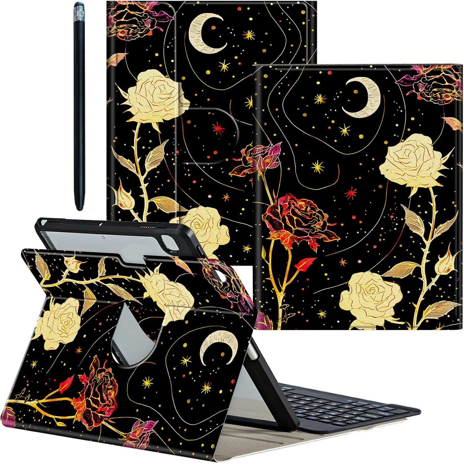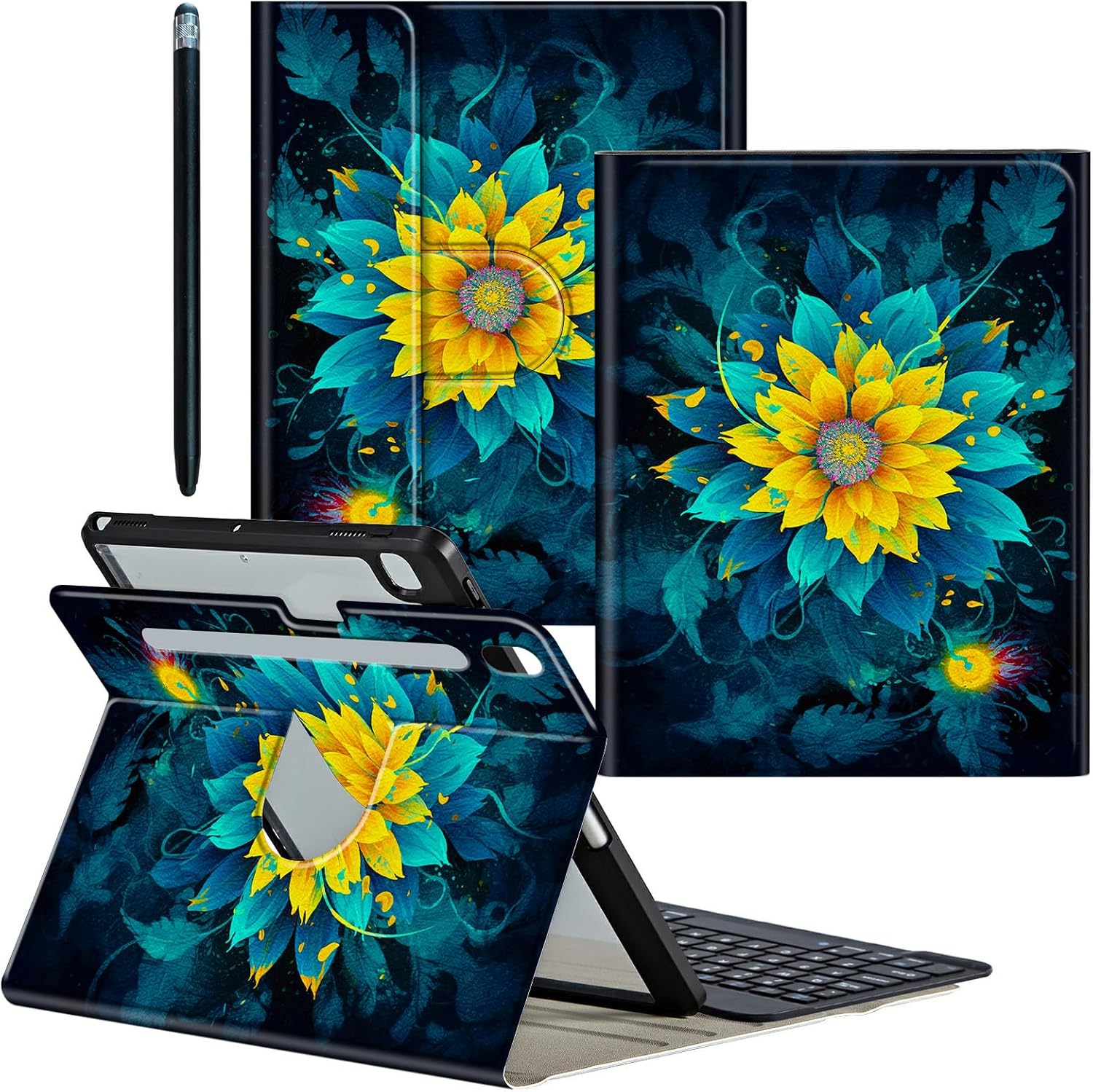 ❤ Compatibility ● 360 Rotating Keyboard Case fit for Samsung Galaxy Tab S9 Plus Model:(SM-X810/X816B/X818U)/Galaxy Tab S9 FE Plus Model: (SM-X610/X616B) 12.4 inch 2023 Release ○ Not fit for other tablet models, please check the model before purchasing ❤ for Galaxy Tab S9 Plus Case ➣ High-Quality PU Leather Cover + Durable acrylic inter Case Provide full protection for your Tablet from scratches, impacts and other daily damages ❤ Pen Holder and Stylus Pen ➢ Built-in pen holder makes it easy to access your pencil,Stylus Pen features 2 Different size rubber tips to cater to various touch requirements ❤ Bluetooth Connection Method 1 Charge keyboard for your first use (3-4 hours) 2 Keyboard switch Button to "On" 3 Then press the "connect" button 4 Turn on tablet Bluetooth 5 Find "Bluetooth 3.0 Keyboard" connect it ❤ Keyboard Feature ● Portable keyboard is thin and lightweight design ○ Magnetic detachable keyboard Easy to install and remove ● Fn + Q/W/E (for Android/Win/iOS) switching operating system ○ Scissor Keys - Comfortable, convenient and fast typing experience ● Optimal key spacing allows you to easily increase typing efficiency ○ Keyboard Bluetooth faster connection speed and more stable signal ❤ 360 Degrees Rotating Function ➣ for Samsung Galaxy Tab S9 Plus Case with Three anti-slip grooves Supports flexible horizontal and vertical viewing,5 flexible viewing positions,Freeing your hands,suitable for watching movies or Video chat etc. ❤ Package includes 1 x for Samsung Galaxy Tab S9 FE Plus Case 1 x Detachable Wireless Keyboard 1 x Keyboard charging cable 1 x Stylus Pen ❤ Exquisite Pattern Design ➢ Clear patterns, bright colors, never fade,A variety of patterns for you to choose,More Exquisite and interesting Patterns,Please Search "CGFGHHUY Galaxy Tab S9 FE Plus Case"