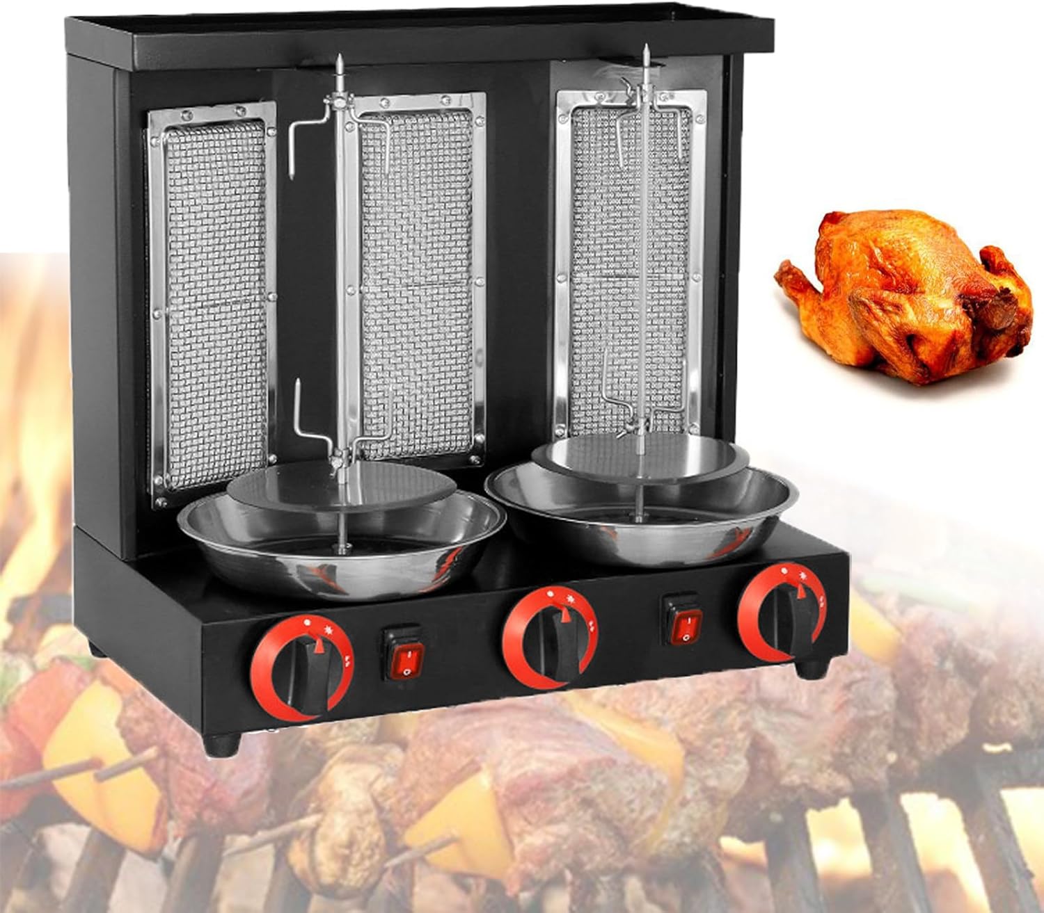 Features :1. It has the advantages of cleanliness and sanitation, avoids the oily smoke produced by charcoal fire, is convenient to use, and heats up quickly.2. Just put the prepared meat into it, turn on the switch and adjust the temperature, and then wait a while to get a fragrant barbecue.3. The tray can prevent oil droplets from contacting the base, making it easy to clean.4. It can hold up to10kg of meat, It is very suitable for family barbecues, picnics and commercial barbecues.5. 360° automatic rotating grill.Product Parameters:Color: Black, SilverSize:M,LAir pressure: 2800pProduct size: 300*300*490mm/510*300*490mmGas source: Liquefied petroleum gas (lpc)Product List:1 x gas barbecue grill Notes:Please read the instructions carefully before use.According to the size manual, please allow a tolerance of 1 to 3 cm. Please make sure this will not happen before inserting.Due to the difference between different monitors, the picture does not reflect the true colour of the item. Thanks! After-sales service:If you have any questions before purchasing the product, please contact us by email and we will provide you with a satisfactory answer. Wish you happy shopping!