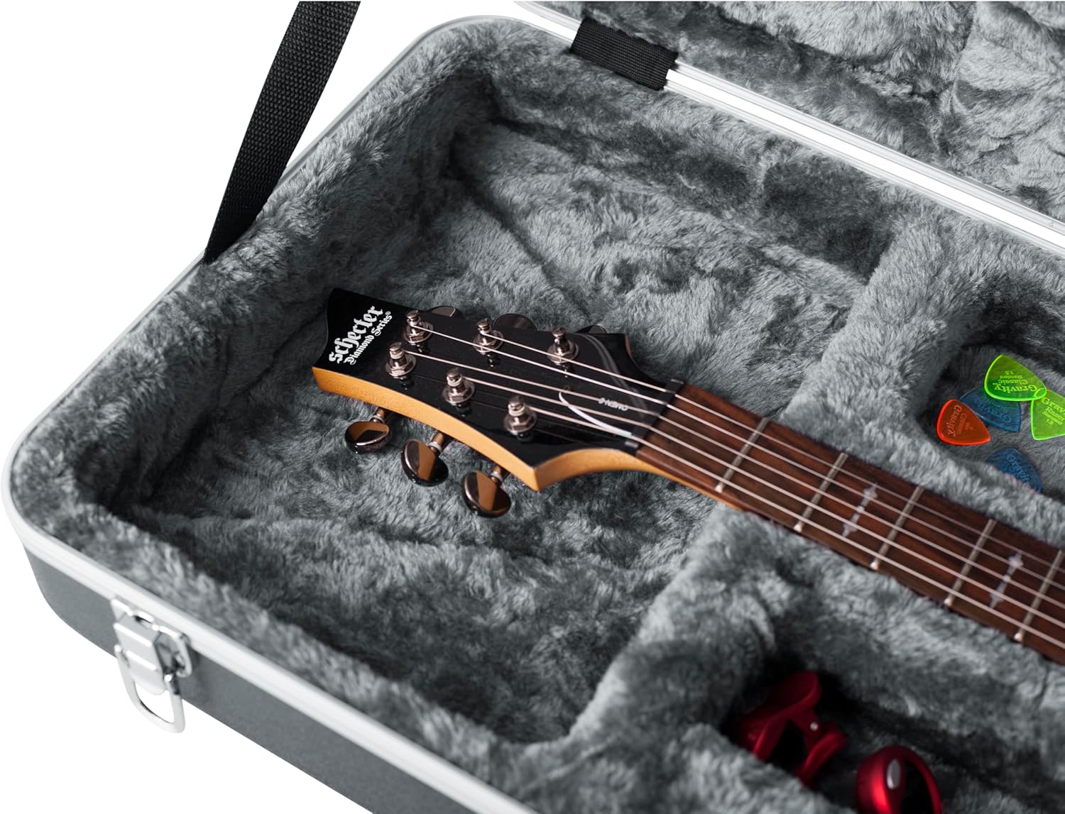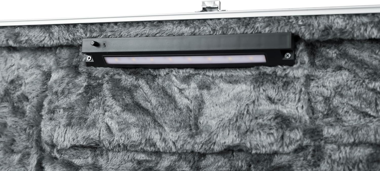 The Gator GC Series Deluxe ABS Guitar Cases include a selection of hard shell carrying cases built with a durable plastic exterior and outfitted with features that will both pamper and protect your favorite guitar. Gator Cases is also the first to offer deluxe and durable protection matched with the luxury of interior LED light fixtures. Designed from durable ABS plastic, the exterior of the GC electric guitar LED Edition case is built to withstand impact and guard your guitar from dust and other damaging elements. The closures and outer edges are outfitted with heavy-duty aluminum valances to protect the case against damage. The LED Edition of this electric guitar case from Gator Cases is the first of its kind. As you open the lid of your electric guitar case, the LED light embedded in the interior of the case lid will switch on, perfectly illuminating the storage spaces next to your guitar so you can quickly find your pick and other accessories on the side stage before the show. The LED light can also be adjusted to be manually turned on and off. The GC electric guitar case LED Edition from Gator Cases offers the premium protection that your electric guitar deserves.