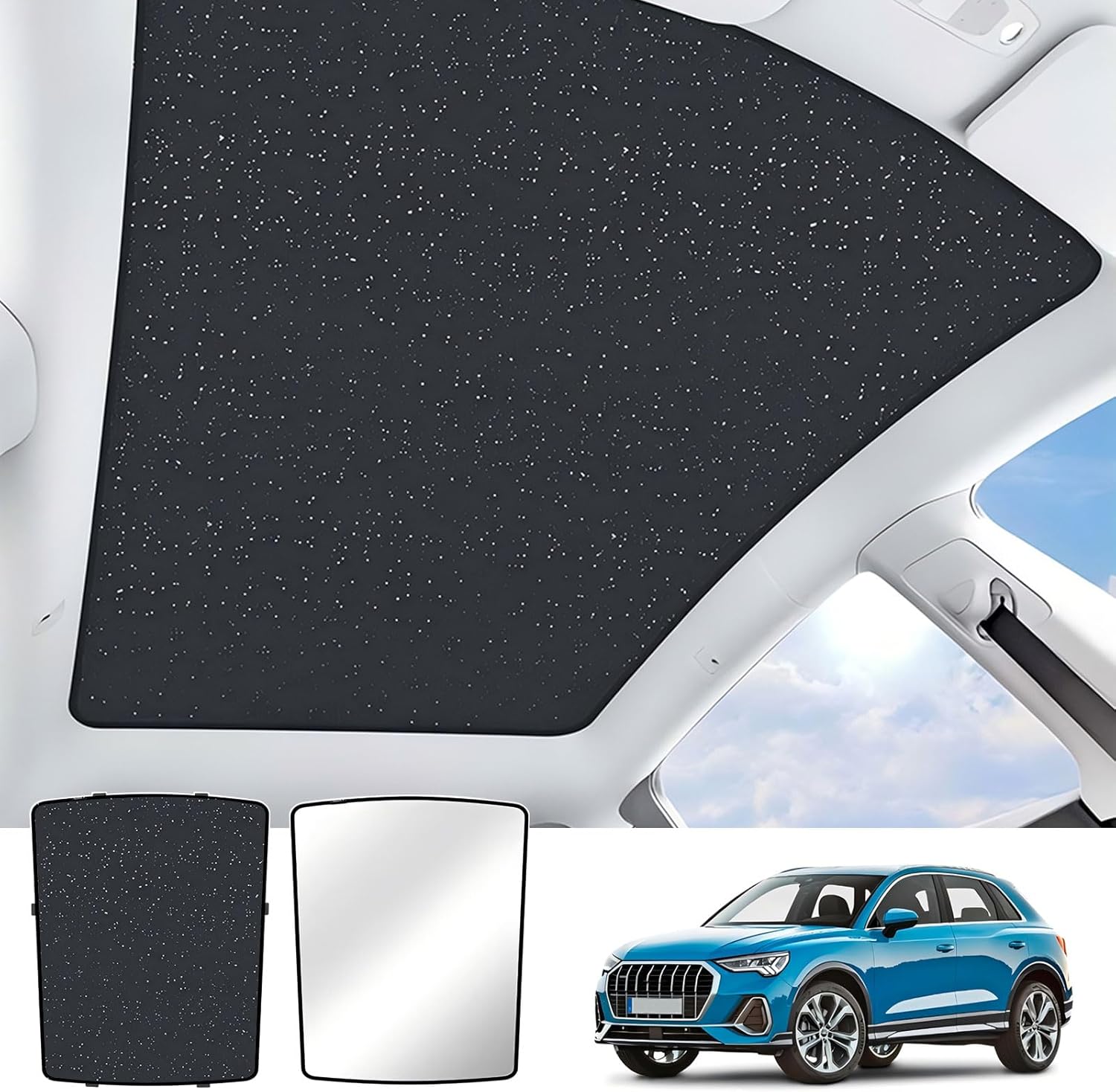 Welcome To Our Store!Are you still worried about the stuffiness caused by direct sunlight from the car sunroof?Are you still worried about the aging, cracking and fading of your car interior due to exposure to the sun?Our car sunroof sun shade can solve your worries and provide you with a comfortable and cool driving experience.1. Namecar roof sun shade2. ApplicableCompatible with Tiguan 2017 2016 2015 2014 2013 2012 2011 20103. Package Includes1 x sunshade1 x opaque coating cloth1 x storage bagenough clips4. Function:(1) Protect your car accessories from aging, cracking, fading and other problems caused by sunlight;(2) Protect your and your family's skin and eyes from the sun and UV rays;(3) High-density breathable mesh promotes ventilation and improves comfort in the car;(4) Quick foldable, easy to store and carry.5. Installation Instructions(1) Twist the car sunroof window sunshade to release the product;(2) Stick the silver coating on the car sun visor;(3) Confirm the installation position of the clips and fix the clips in the gap at the edge of the car sunroof;(4) Fix the top windows sun shade on the clips to complete the installation.