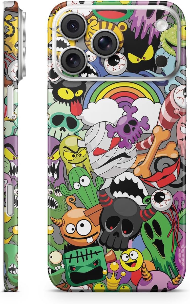 Glossy Glitter Phone Skin Compatible with Apple iPhone 17 Pro - Monster Mash - Premium 3M Vinyl Protective Wrap Decal Cover - Easy to Apply | Crafted in The USA by MightySkins