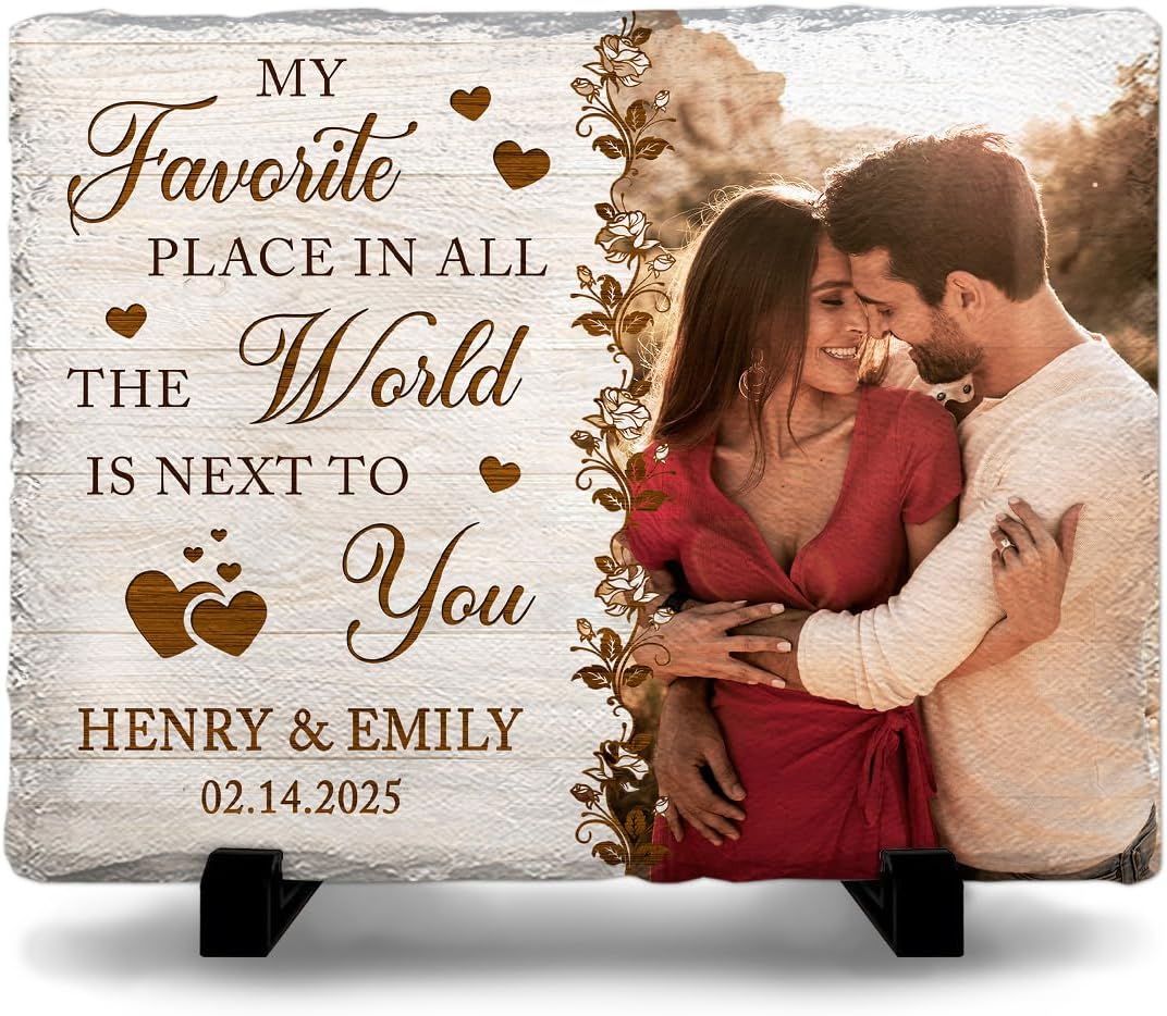 Personalized Anniversary Stone: Crafted from unique natural rock, this custom frame lets you add your photo, names, and a special date-creating a one-of-a-kind keepsake. Perfect for anniversary gifts, couple gifts, and wedding memories.