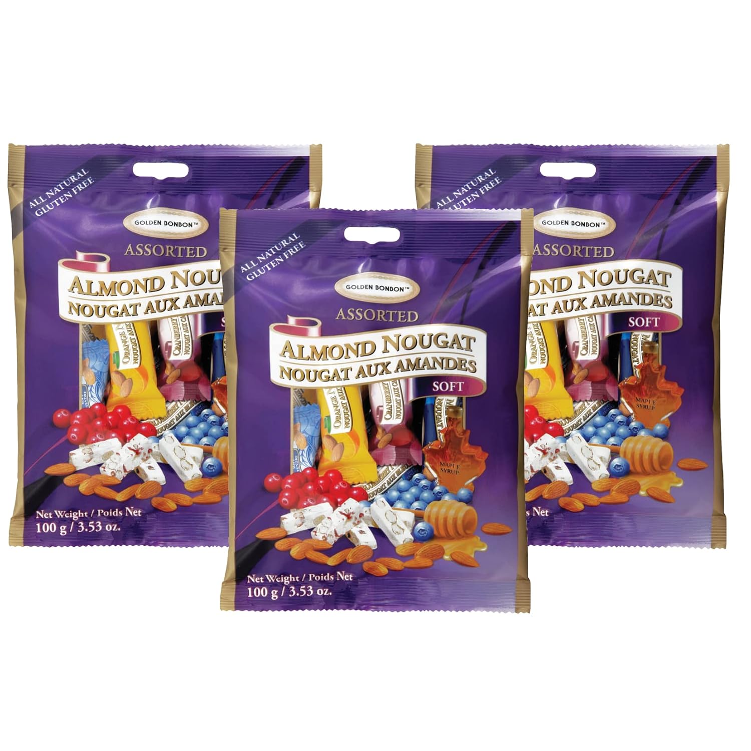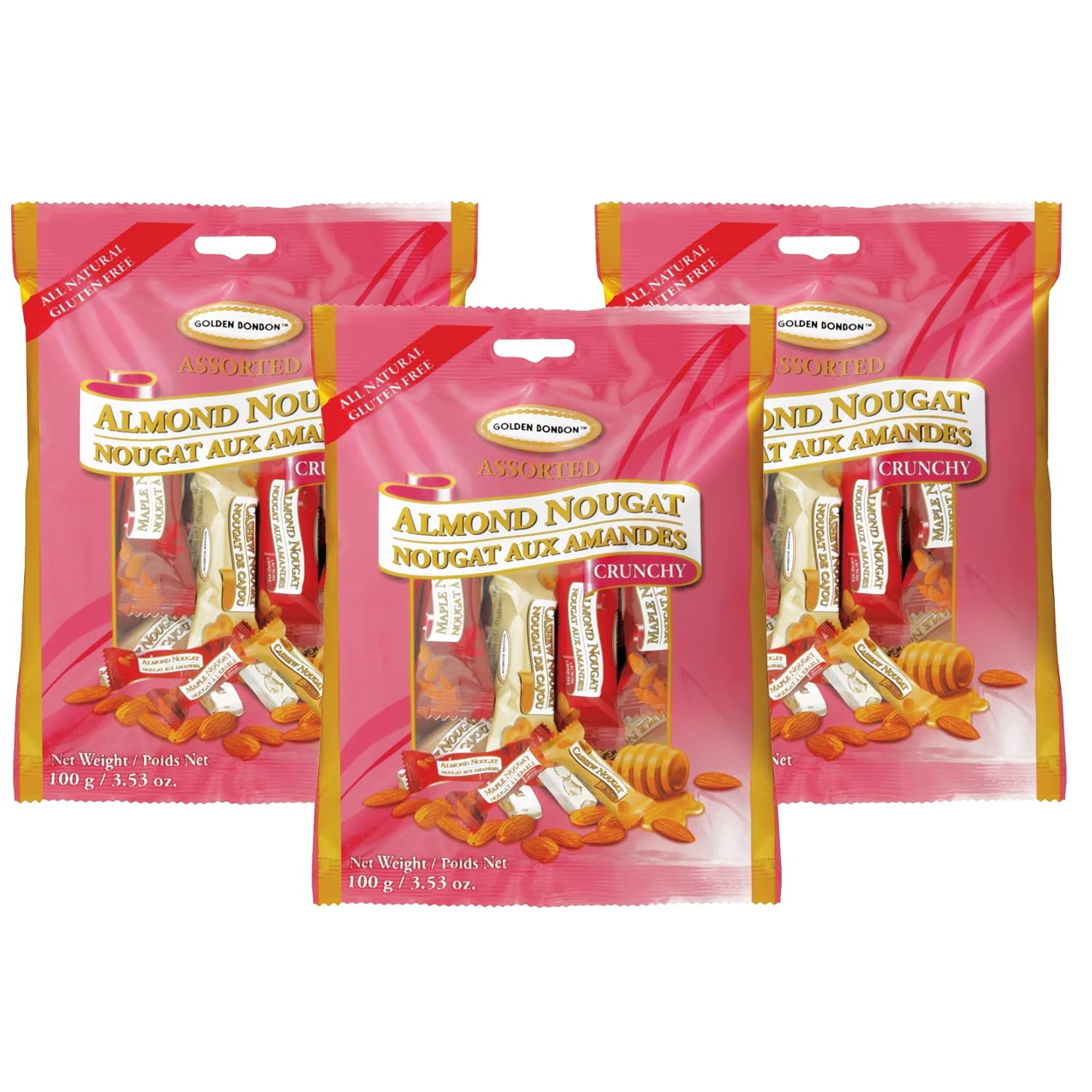 Golden Bonbon Italian Soft Almond Nougat Candy, Individually Packed Chewy, Gluten Free Nougat, Full of Almonds, Halal Candy 3.53 Ounces (Pack of 3) (Almond Orange)