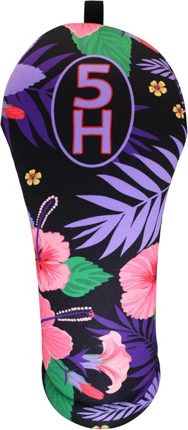 Protect your golf clubs from scratches and the elements with this vibrant Hawaiian Hibiscus Golf Club Head Cover. Adorned with colorful tropical flowers and leaves, this large head cover will shield the head of your driver or fairway wood from the sun's rays between rounds on the green. Made of durable yet lightweight material, it slips easily over most club heads and secures in place with a hook-and-loop strap to stay put throughout your journey to and from the course. Whether you're an avid player or occasional weekend warrior, lend some fun flair to your bag with this eye-catching head cover featuring a botanical print that's sure to transport your mind to the islands.
