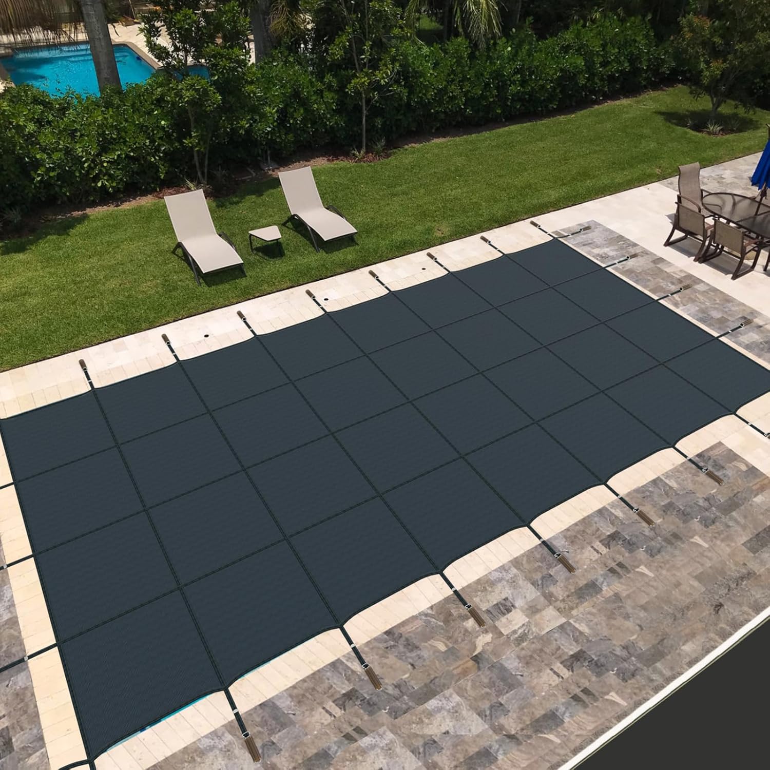 Description: Looking for the perfect pool cover to keep your pool clean and debris-free? Our high-quality premium pool safety cover is the answer! Crafted from durable and wear-resistant PP material, this pool cover is built to last. Not only does it keep your pool free from debris, fallen leaves, and snow, but it also helps to reduce evaporation, preserving the water level. Besides, featuring an upgraded mesh design, our pool safety cover allows water to pass through while effectively blocking sunlight and debris. With adjustable straps, our pool cover provides a secure and customized installation. Additionally, the tight stitching and premium springs with protective covers add to its durability and stability. Features: High quality PP material ensures durability and long-lasting performance Premium springs with protective covers ensure a sturdy and safe pool cover Reduces evaporation, helping to maintain the water level in your pool High-strength construction guarantees a secure and stable pool cover Upgraded mesh design allows water to pass through while blocking debris Effectively prevents fallen leaves from entering and dirtying the pool Snow cover feature keeps your pool safe and free from winter weather effects Adjustable straps provide a customizable and secure installation Specifications: Color: Blue, Green Material: PP, Metal 【Style: Size 34 x 18 ft, Fits 32 x 16 ft】 Overall Dimension: 34 x 18 ft /1029 x 544 cm (L x W) Suitable Pool Size:32 x 16 ft/975 x 490 cm (L x W) Net Weight: 32 Ibs / 14.5 kg Weight Capacity: 1000 lbs / 455 kg Package includes: 1 x Folding Pool cover 24 x Stainless Steel Springs 24 x Brass Anchors 24 x Spring Covers 2 x Installation Tools 1 x User Guide 【Style: Size 42 x 22 ft, Fits 40 x 20 ft】 Overall Dimension: 42 x 22 ft /1272 x 660 cm (L x W) Suitable Pool Size:40 x 20 ft/1220 x 610 cm (L x W) Net Weight: 47.5 Ibs / 21.5 kg Weight Capacity: 1000 lbs / 455 kg Package includes: 1 x Folding Pool cover 28 x Stainless Steel Springs 28 x Brass Anchors 28 x Spring Covers 2 x Installation Tools 1 x User Guide