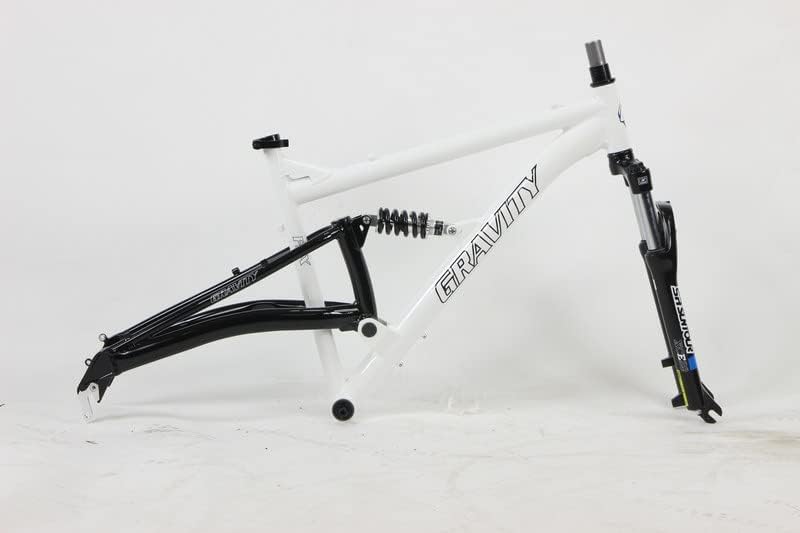 FSX1.0 Frame : Gravity FSX 1.0 Frame and Fork Only for 26 Inch Wheel Description: Gravity 26inch Full Suspension MULTI-SPEED Aluminum FRAME This 26 inch full suspension frame is a multi speed frame and disc brake ready. This Gravity FSX 1.0 comes in Gloss Black, White, Gray or Yellow.. Here are some highlights: Frame:Oversized Bearing CantiBeam Link SinglePivot, Custom Formed TIG Welded 6061 Aluminum Front Triangle with Hydroformed tubes. Rear Triangle with replaceable rear derailleur hanger BRAKE MOUNT: Disc Brake only Headset: Standard 1 1/8 (Not Included) Bottom Bracket: 68mm English Threaded(not included) Seat Post: 27.2 mm (not included) Seat Post Clamp: 31.8 mm quick release(Not Included) Rear Shock: KS CoilOver with adjustable preload (Included) Rear Spacing: 135.0 mm Sizes: 15, 17, 19 or 21 in Color: Gloss Black. NOTE: This is sold as a frame only