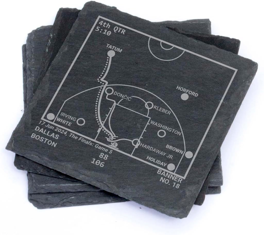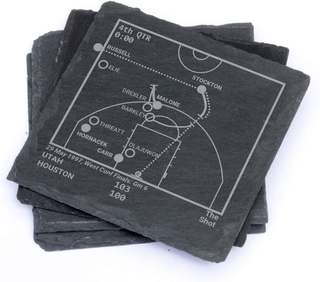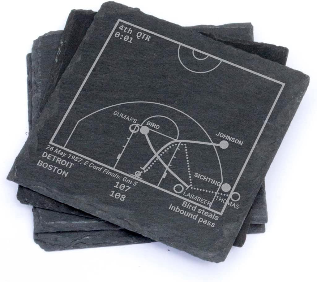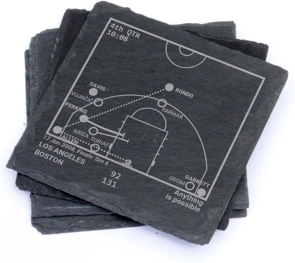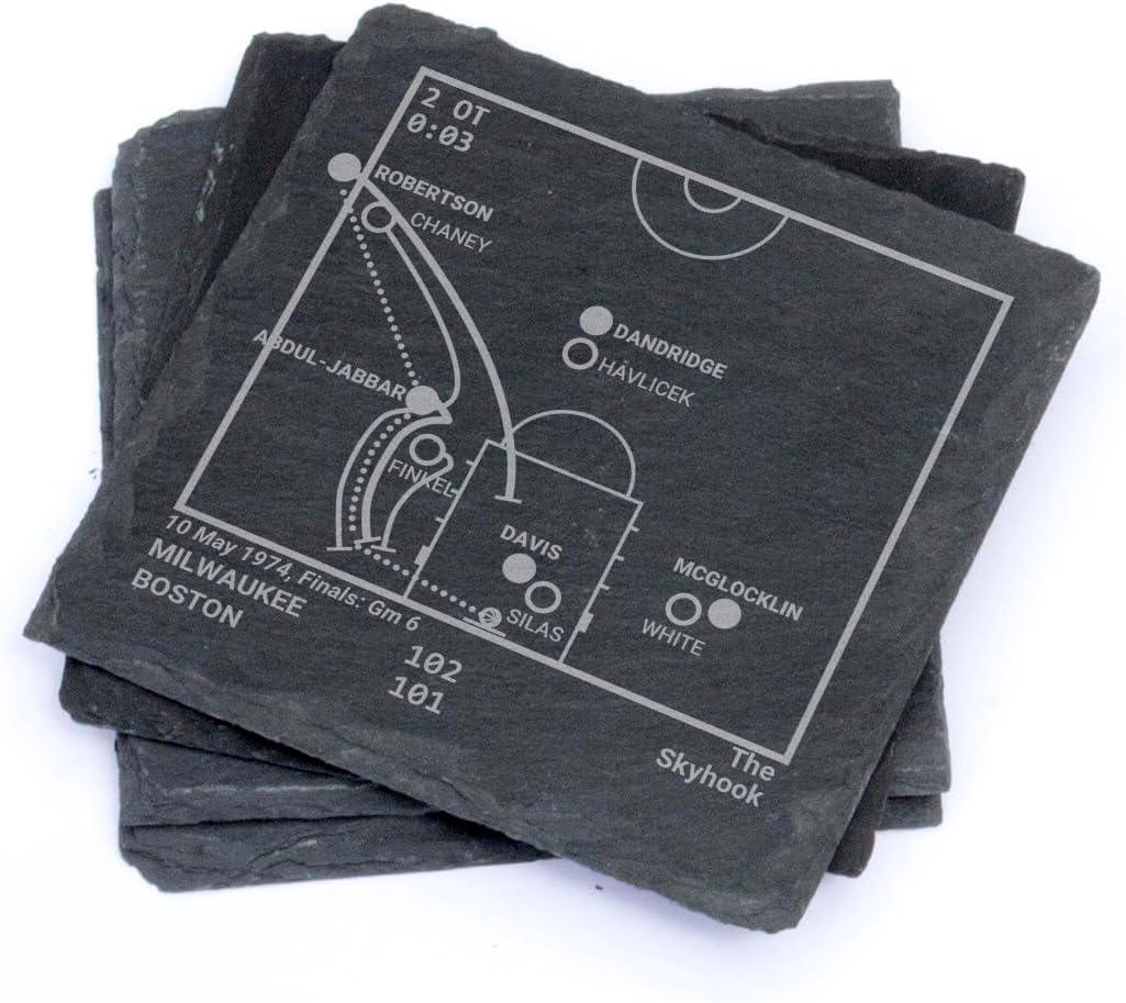 Four Distinct Plays From LAL History Relive four of the greatest moments in LAL basketball history. Each set comes with four laser-etched coasters depicting iconic moments and plays that every fan remembers The Perfect Gift 16,000+ Five Stars across all selling platformsOur coaster sets are adored by sports lovers. A unique LAL gift idea for men - your dad, son, friend, father's day, christmas, or any sports fan in your life! Something Different Extremely unique, our coaster set brings something new and asethtic. Not the same-old logo slapped onto a product, our coasters showcase memories that real fans immediately recognize as they begin telling stories about their favorite moments. These slate coasters are made from 100% real natural slate and laser-etched to maintain durability, prevent flakey paint like other coasters, and bring a clean and aesthetic look to any room or office in your house. A great home decor option for you or your loved one. These leatherette coasters are laser etched to reveal a vibrant silver foil. Size: 4'' x 4'' x 0.15'' per coaster Weight: 0.2lbs (3oz) Stitched border Notice: No sports player, team, league, or playoff is affiliated with Playbook Products or is the source of, is responsible for, or has endorsed, sponsored, or authorized these products or this website.