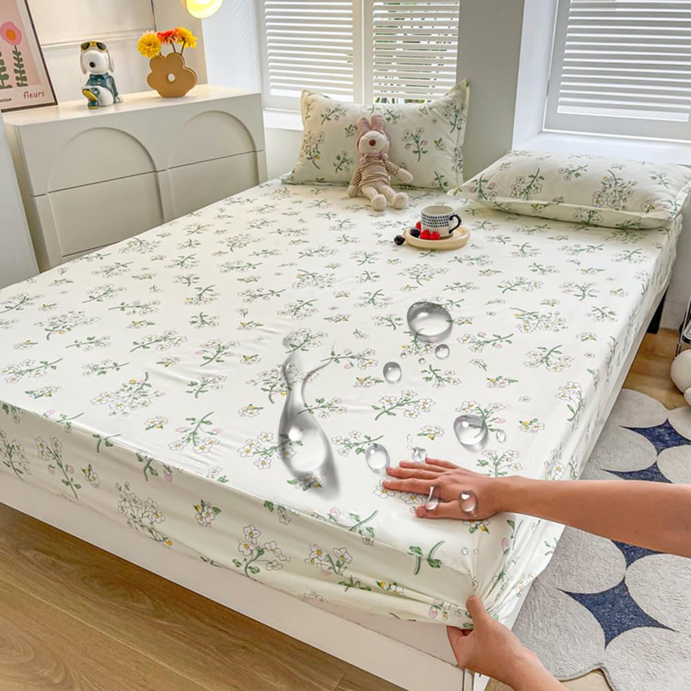 Simple and beautiful waterproof mattress protectorPerfectly protect your mattressSoft and comfortable fabricThis mattress cover can be used in any seasonFabric: Surface: Washed cotton fabricOn the back: TPU waterproof layerFeatures: waterproof dustproofPrinting and dyeing process: reactive printing and dyeingWhether it can be machine washed: Can be machine washedCan accommodate mattress thickness: below 23cmColor: A,B,C,D,E,F,greyA,greyB,greenA,greenBSize:120*200cm(47*79in)150*200cm(59*79in)180*200cm(71*79in)180*220cm(71*87in)200*220cm(79*87in)Package includes:waterproof Mattress protector*1 (pillowcase not included)notes:1. Please allow 1-3cm error due to manual measurement.2. Due to different monitors, there may be slight color differences. We hope you can understand.