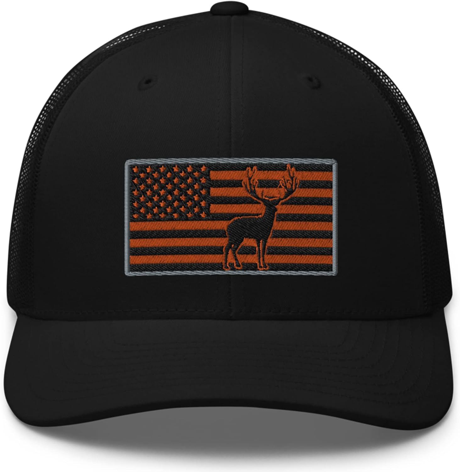 Show the world your love for deer hunting with this orange, black, and grey embroidered trucker hat by Gunner Gear. This snapback baseball style trucker hat would be a great choice for any deer hunter or anyone that loves the great outdoors. Ideal hat for country men and women to wear in a deer stand, at work, a party, or just spending time with friends and family. At Gunner Gear we strive to create apparel that embodies the fighting spirit of this great nation from our founding fathers in 1776 until today. Gunner Gear's guiding principles - Everything we do must be able to pass the three tests below: MISSION STATEMENT: To be the leader in promoting loyalty in our nation, the military, and our families. VISION: Every American will proudly celebrate and defend the freedoms of our great nation. VALUES: We foster honor, loyalty, and respect in all we do 60% cotton, 40% polyester Mid-profile cap with a low-profile embroidery area Structured, six-panel cap 3.5″ crown (8.9 cm) Hard buckram front panels Mesh back Permacurv visor, matching undervisor Plastic adjustable closure Head circumference: 21⅝″–23⅝″ (54.9 cm–60 cm)