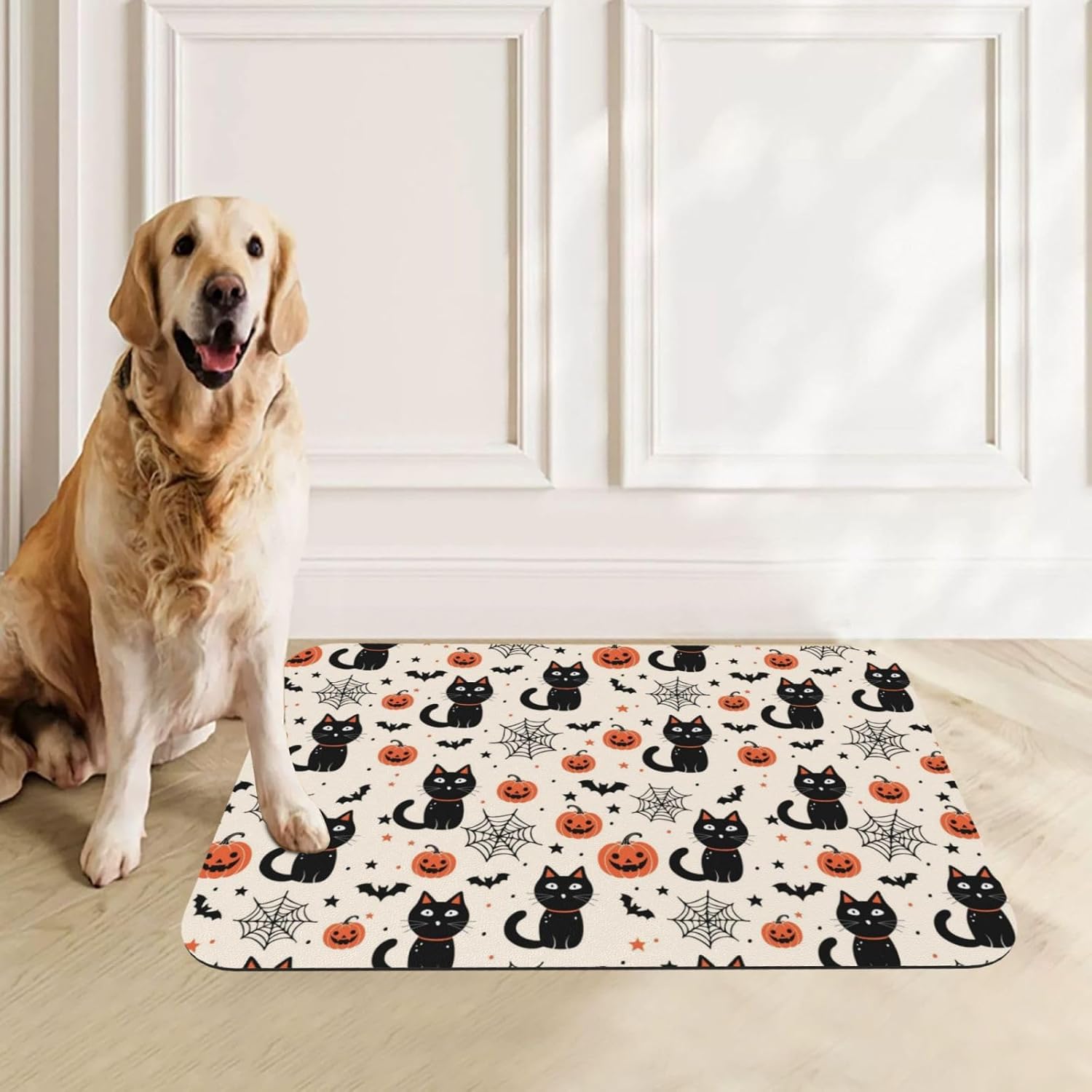Tired of dealing with messy pet spills?Our Pet Feeding Mat is here to save the day!It acts like a super - sponge, instantly absorbing any spilled liquids during your pet's feeding frenzy.With its non - slip grip, it stays put, and the leak - proof design protects your floors.Cleaning is a breeze—just a quick wipe!Exquisite prints make it a beautiful decoration,it's a must - have for every pet owner and a great gift too!