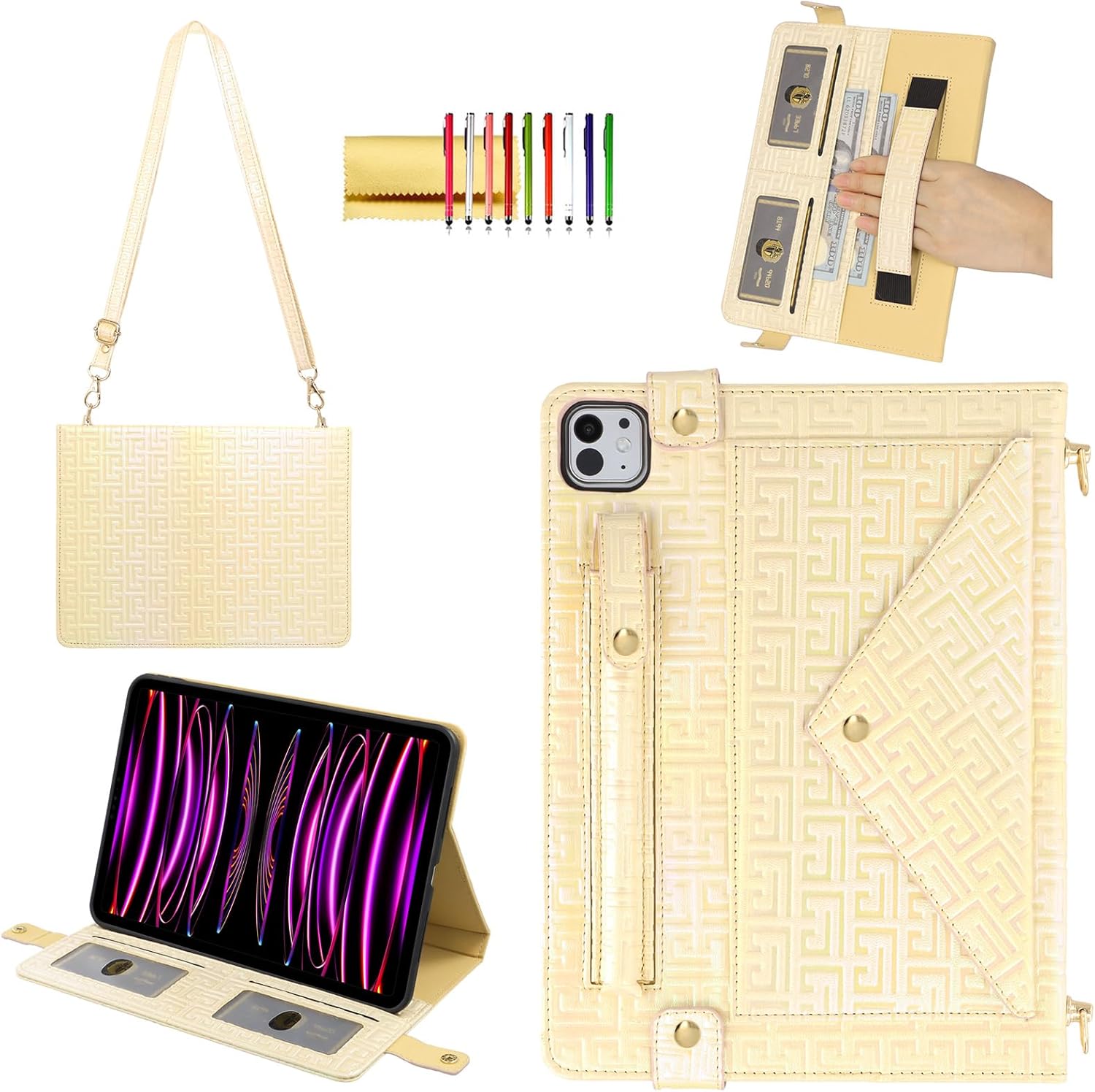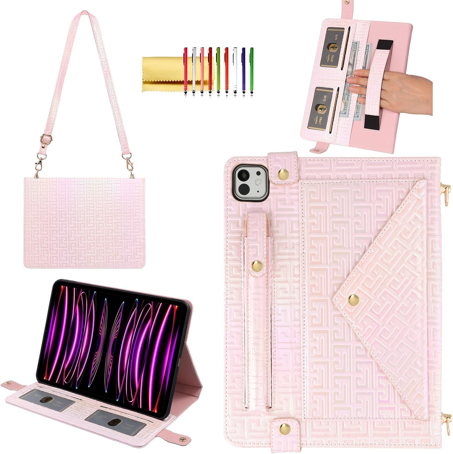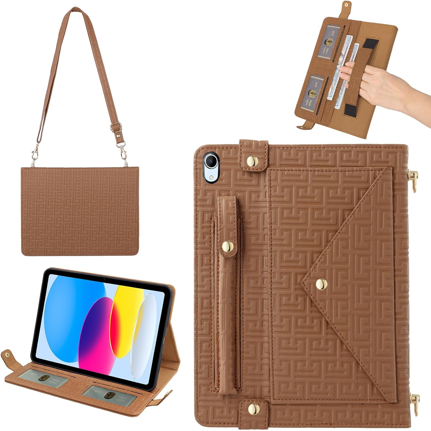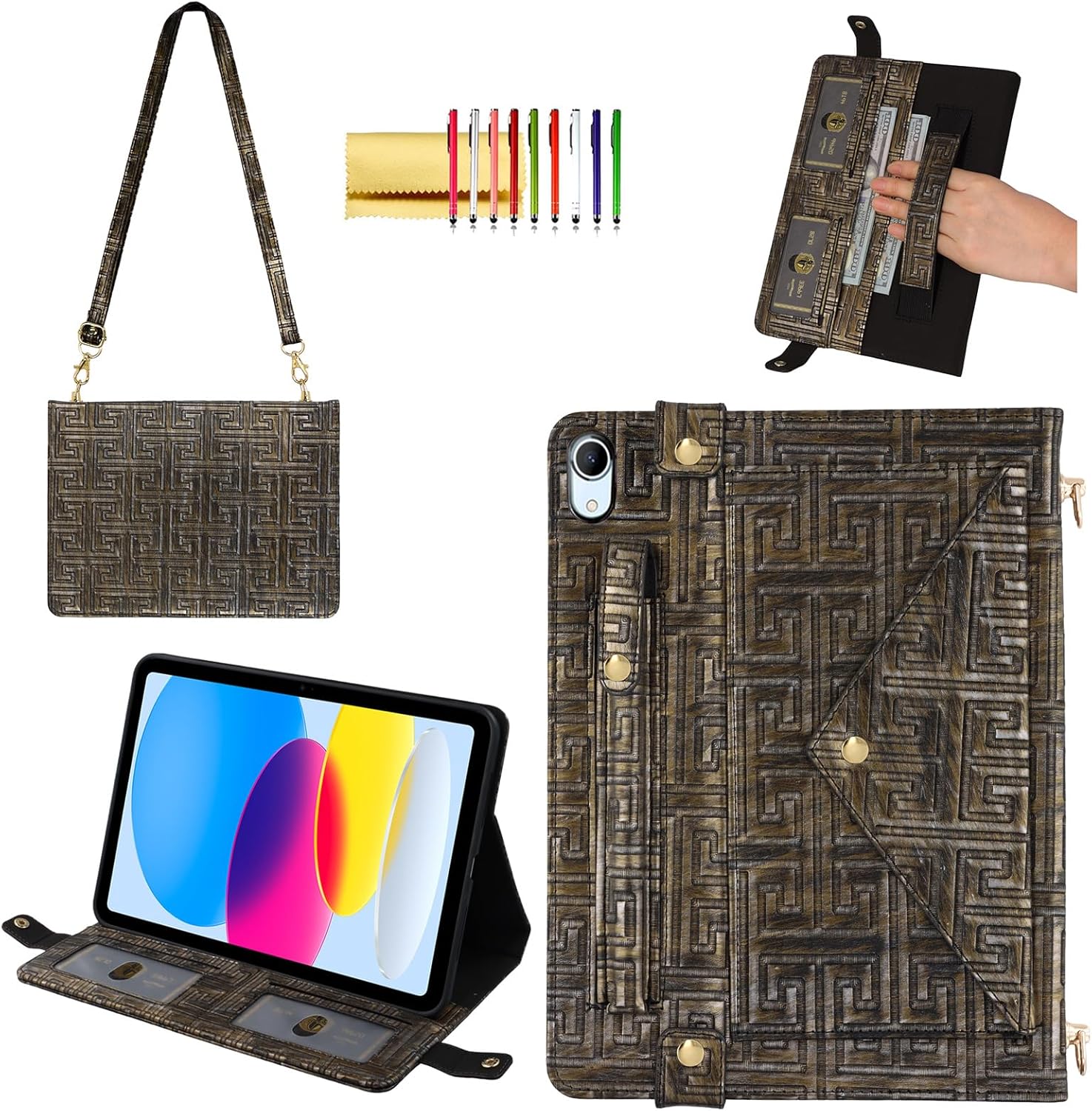 Elegant iPad 11" A16 Case / iPad 10th Generation Case for Women, Smart Folio Stand Case with Handle, Pen Pocket & Shoulder StrapCompatibility:- iPad 11th generation 11-inch 2025 Release (Model Number: A3354, A3355, A3356)- iPad 10th generation 10.9-inch 2022 Release (Model Number: A2696, A2757, A2777)* Doesn't fit any other model. Please confirm the model from the Back Bottom of iPad before purchasing! Product Details:Full Protection:Made of ultra-thin synthetic leather exterior and soft microfibre lining, soft TPU inner case protects your iPad from scratches, dirts and spills.Stable Kickstand:Flexible folding feature helps to set up multiple horizontal angles for watching movies and video chatting conveniently.Portfolio Wallet Feature:The external pocket & internal multiple slots are designed to store business cards, ID, credit cards, bills, tickets or invoices at any time and any place. Also comes with a stylus holder pocket for your Apple Pencil.Hand Belt & Crossbody Strap:Built-in stretchy handle for comfortable grip while reading. A detachable and adjustable shoulder strap is designed for travel and business trip. Package Includes:1 x Handbag Case for iPad 10th Gen 10.9 inch / iPad 11 inch A16 tablet1 x Shoulder Strap1 x Stylus Pen (Random Color)1 x Cleaning ClothWarm Tip:Color might seem a little different (lighter or darker) on different devices.