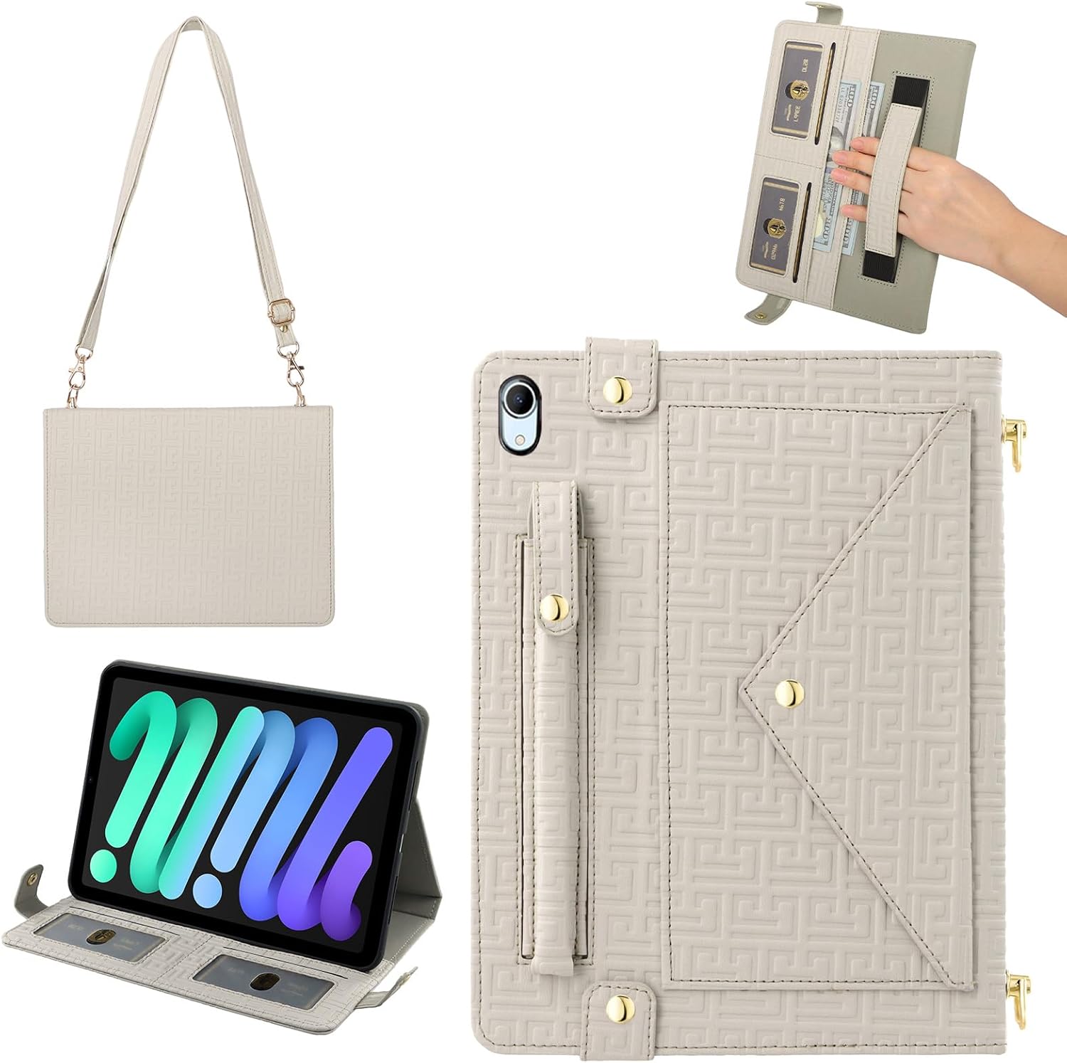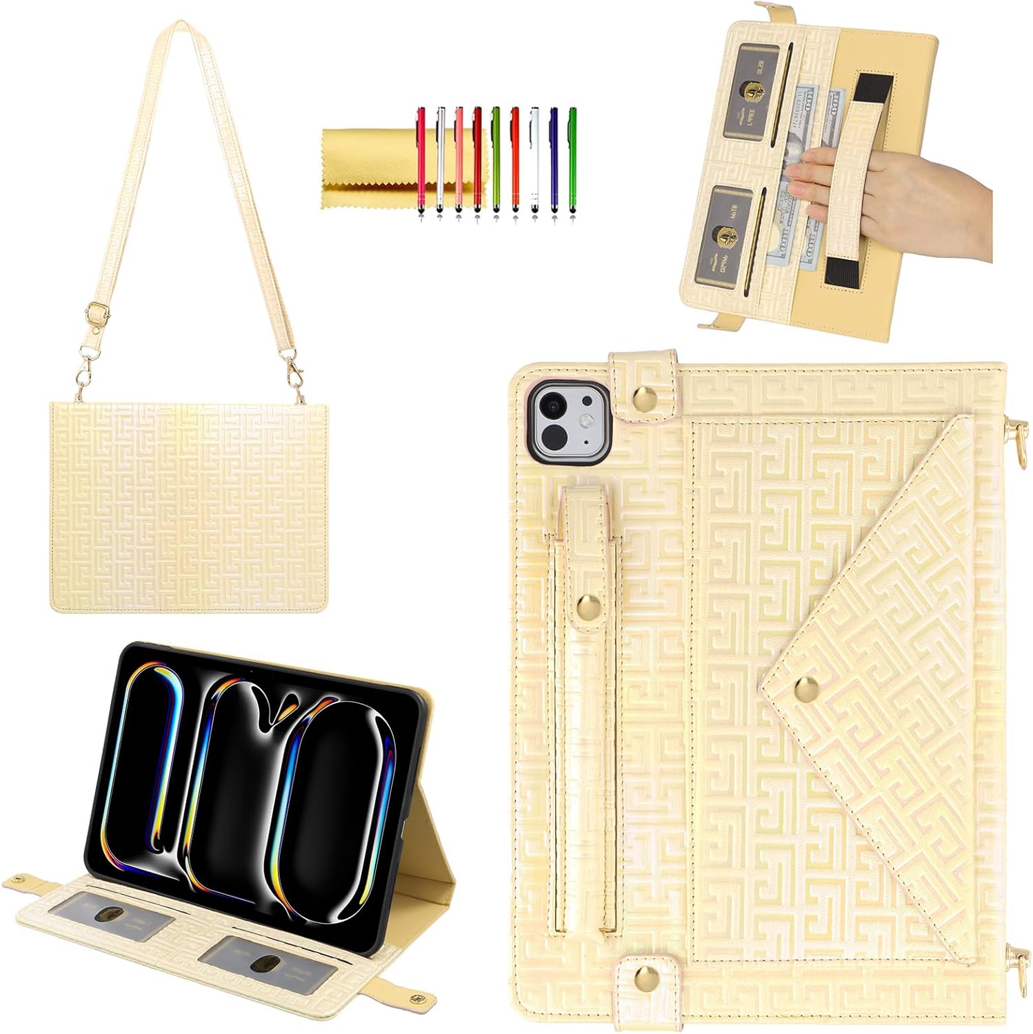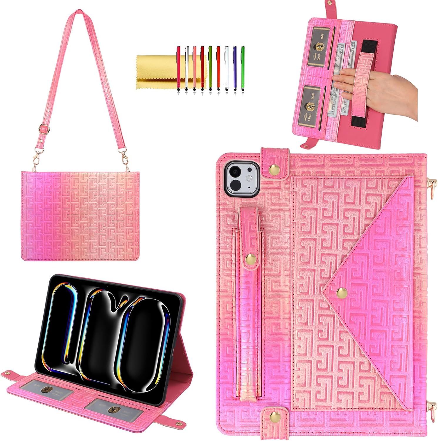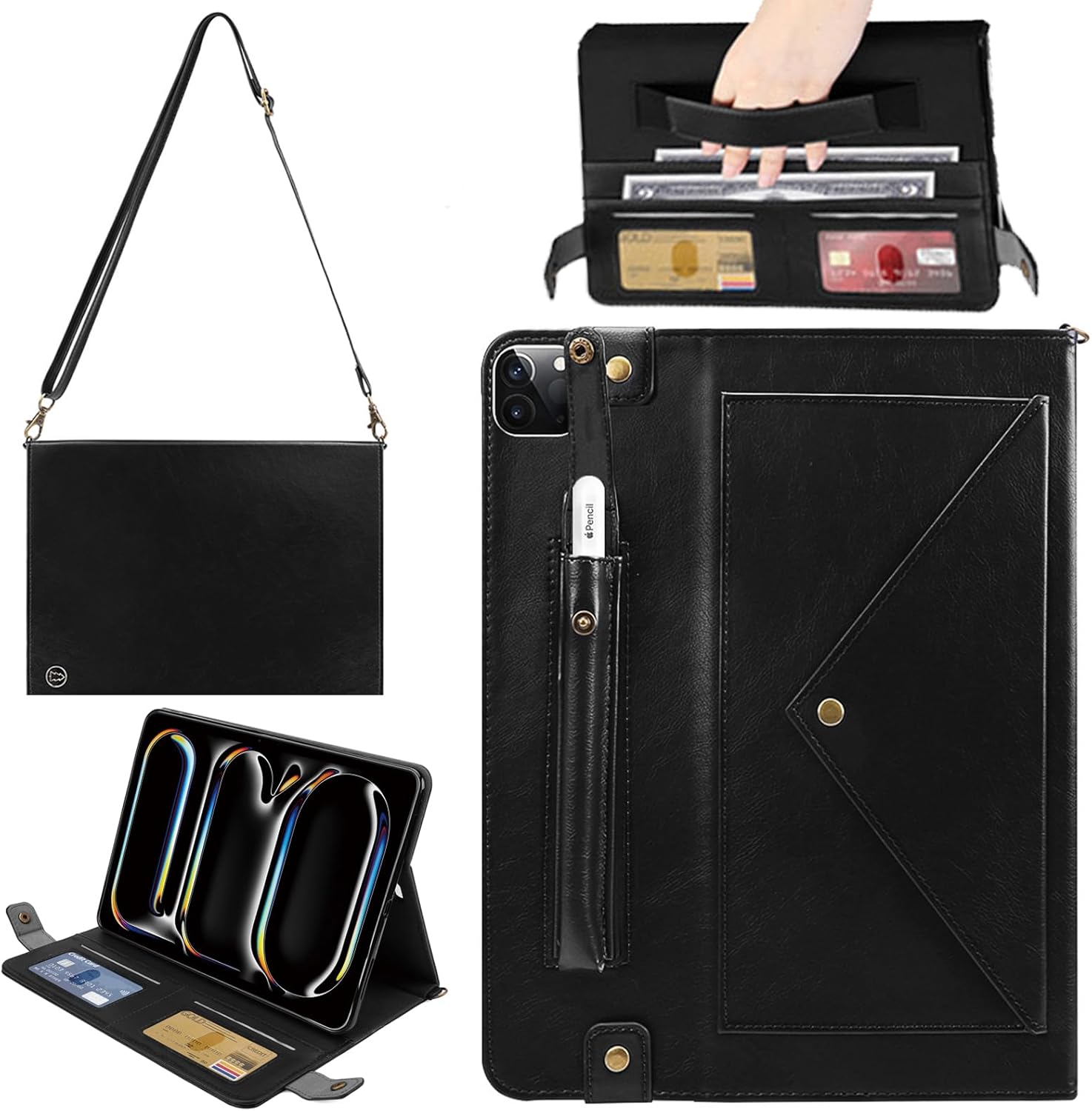 Elegant iPad 11" A16 Case / iPad 10th Generation Case for Women, Smart Folio Stand Case with Handle, Pen Pocket & Shoulder StrapCompatibility:- iPad 11th generation 11-inch 2025 Release (Model Number: A3354, A3355, A3356)- iPad 10th generation 10.9-inch 2022 Release (Model Number: A2696, A2757, A2777)* Doesn't fit any other model. Please confirm the model from the Back Bottom of iPad before purchasing! Product Details:Full Protection:Made of ultra-thin synthetic leather exterior and soft microfibre lining, soft TPU inner case protects your iPad from scratches, dirts and spills.Stable Kickstand:Flexible folding feature helps to set up multiple horizontal angles for watching movies and video chatting conveniently.Portfolio Wallet Feature:The external pocket & internal multiple slots are designed to store business cards, ID, credit cards, bills, tickets or invoices at any time and any place. Also comes with a stylus holder pocket for your Apple Pencil.Hand Belt & Crossbody Strap:Built-in stretchy handle for comfortable grip while reading. A detachable and adjustable shoulder strap is designed for travel and business trip. Package Includes:1 x Handbag Case for iPad 10th Gen 10.9 inch / iPad 11 inch A16 tablet1 x Shoulder Strap1 x Stylus Pen (Random Color)1 x Cleaning ClothWarm Tip:Color might seem a little different (lighter or darker) on different devices.