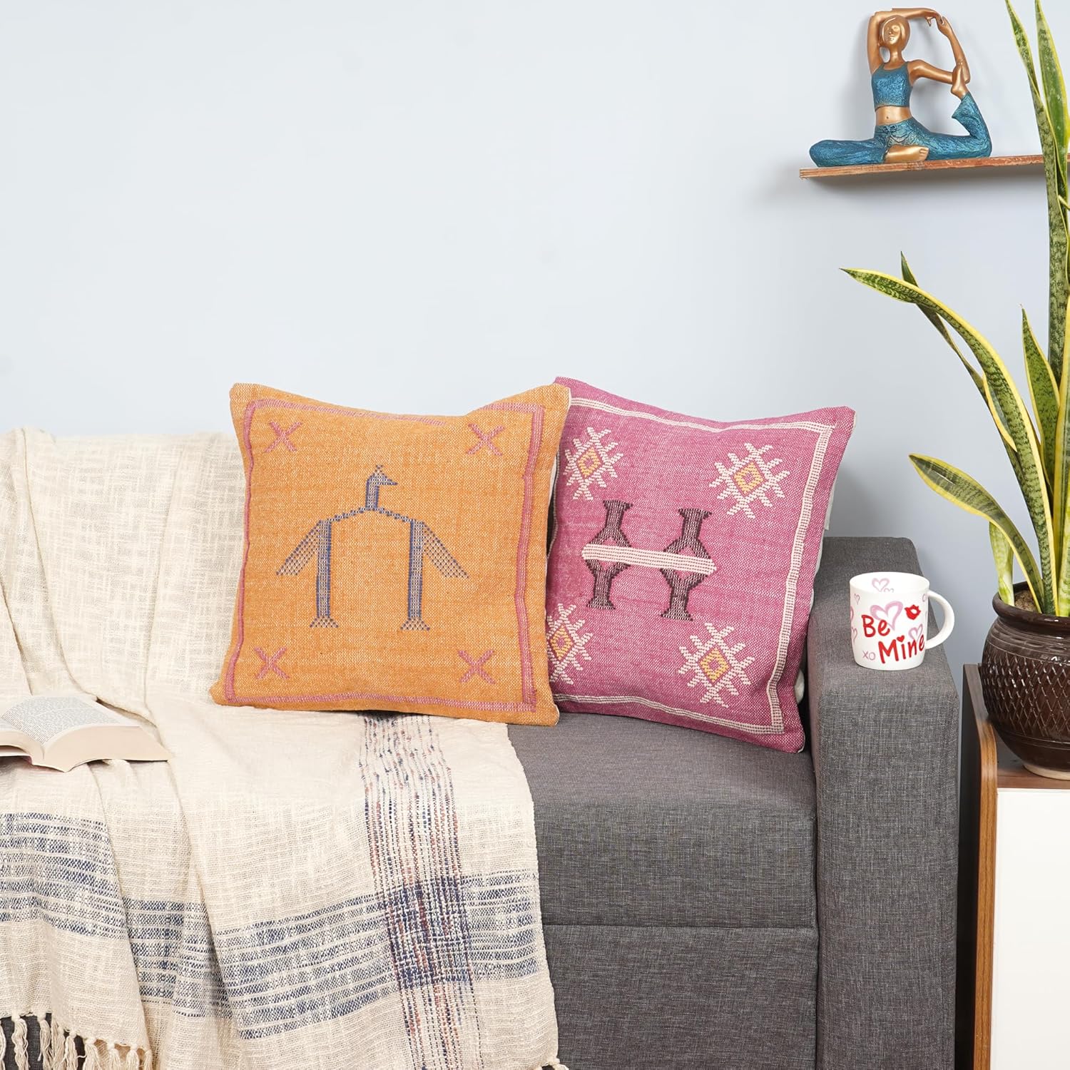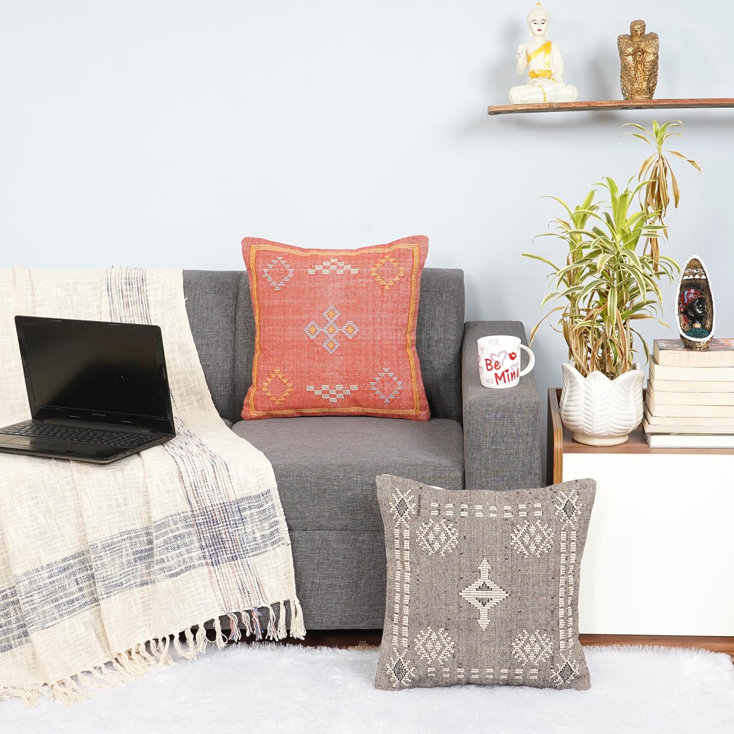 Handwoven Sabra Pillow Cover – Decorative Cotton Cushion Cover for Sofa, Couch, Bed or Living Room – Boho Tribal Throw Pillow Cover – 18x18 inch (Insert Not Included) Add a touch of warmth, charm, and artisan style to your home with this Handwoven Sabra Pillow Cover made from high-quality cotton. Inspired by traditional weaving techniques, this unique cushion cover features a flat, pile-less surface created using the slit weave method, giving it a distinct, textured appearance. Perfect for modern boho, tribal, rustic, or eclectic interiors, it enhances any space with its handmade beauty. Whether placed on your sofa, couch, armchair, bed, or bench, this pillow cover is designed to elevate your decor with its eye-catching patterns and artisanal craftsmanship. It's an ideal accent piece for living rooms, bedrooms, reading nooks, or even office lounges.