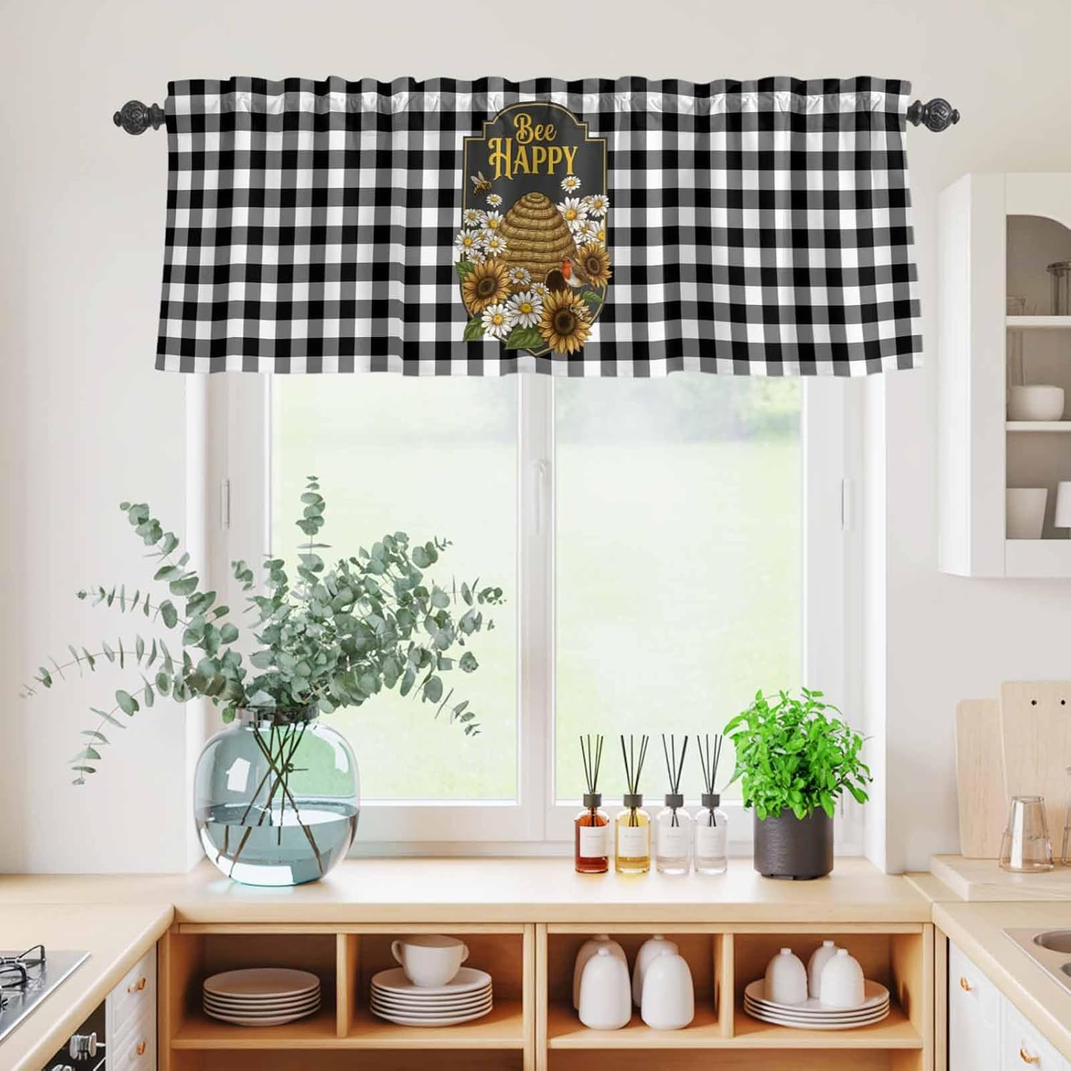 Edwiinsa Home Store 3 Piece Tier and Valance Curtain Kitchen SetThis rod pocket window curtains kitchen set provides a classical natural look, and is perfect to any house style, suits well with modern/classical/ antique /vintage/contemporary/trendy home decoration.Luxurious Fabric & High Quality Print1. Functional Stitch on the edges prevent fabric loose and uneven edges.2. Extremely soft to the touch3. Clear print technology without any visual flaws4. Suitable for kitchen, infant room, basement, bedroom, living room and other windows, for a privacy protection.Light Filtering/ Blocking DraperyWelcome in natural light by hanging our curtains to softly diffuse sunlight, creating a warm glow and ambiance. Our window treatment curtains can be hung via a rod pocket or metal grommets, depending on the curtain collection you choose from.