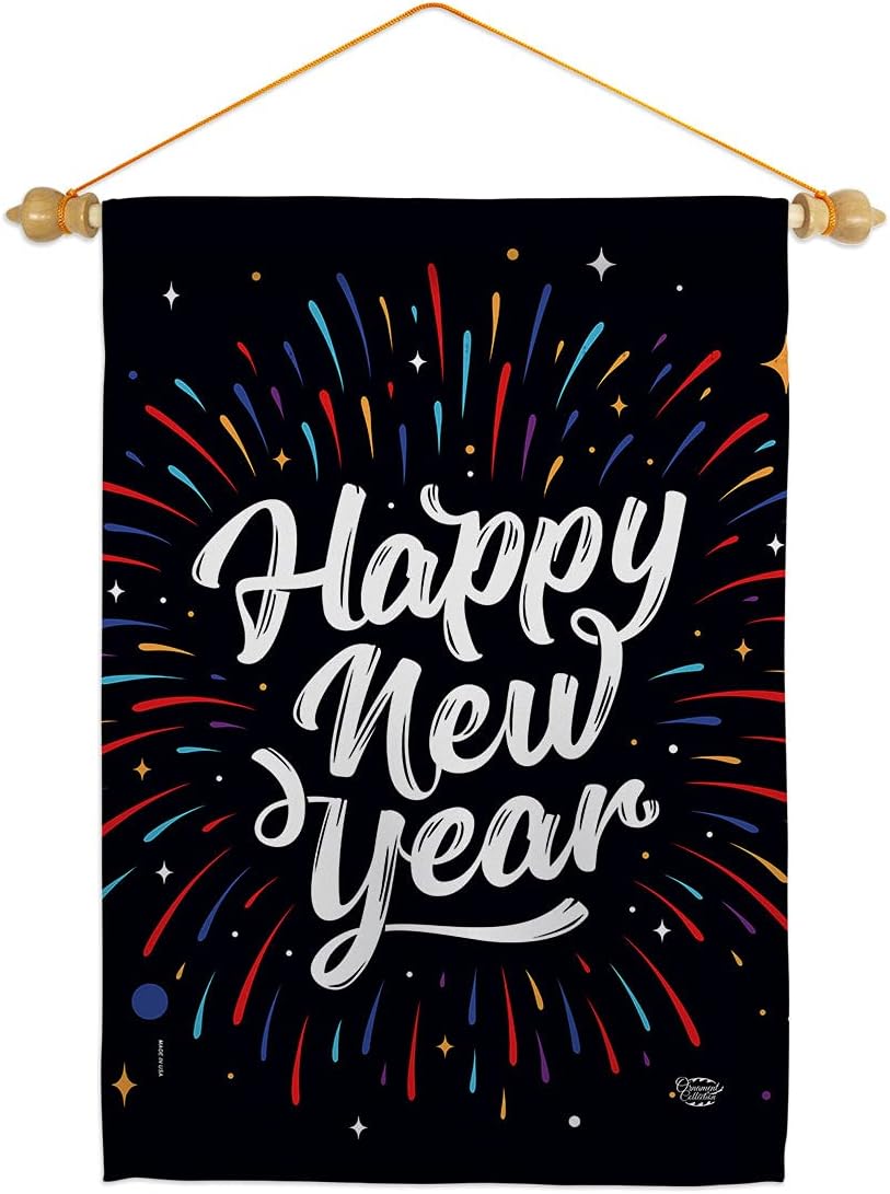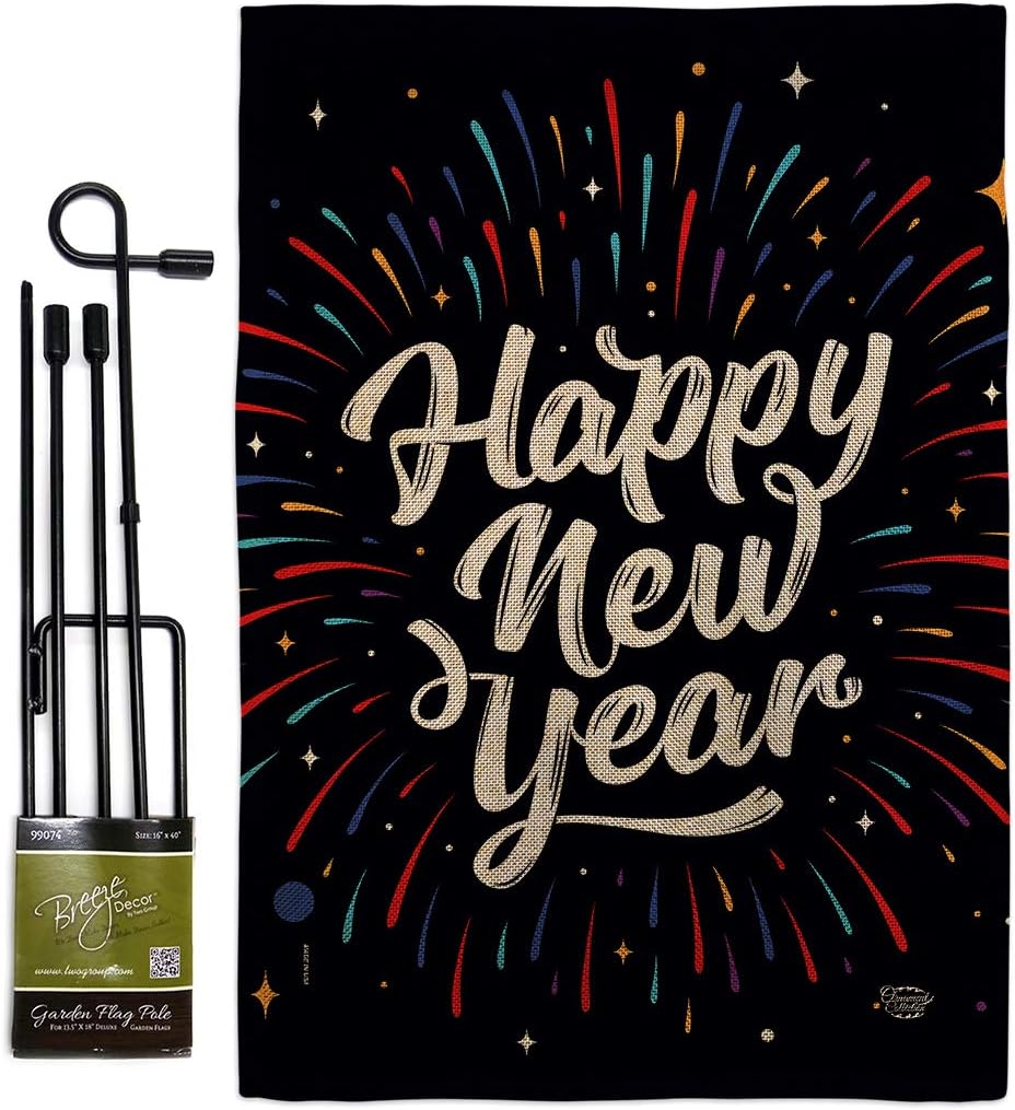 New Year Beautiful Mini Garden Flag with Metal Garden Banner Pole Stand - Complete Set with Fansy Wall Bracket - 12" x 16" Power Coated Metal Flag HolderOrnament Collection have variety of Garden Flag Set for all occasions. Uniquely design for hanging indoor or outdoor use. We are committed to offering you exceptional values. Our customers enjoy displaying our Garden Flag Set for longer periods. Specification: Theme: New Year Size: Garden Flag Set 13" x 18.5" Size: Metal Fansy Wall Bracket Print: Double-Sided Readable: Readable Single Side Material: Weather Resistant Polyester 300 D Stitching: Double Stitched Display: Vertical Hang Type: Sleeve Artist: Jay Connor Special Features: Origin: Made In USAPackage Include: 1 pc x Mini Garden Flag 13" x 18.5" 1 pc x Metal Yard Banner HardwareFor more than a decade, we’ve been dedicated to manufacturing flags with no comparison in quality and beautiful designs. Our flags are made with our Pro Guard material that is soft to the touch and designs can be read correctly on the flag. A feature that our customers will love. We are committed to using eco-friendly inks that won’t leave a foot print in our environment. MPN: OC-NE-GS-192330-IP-P3-03-S-US20-OC 92330 92330