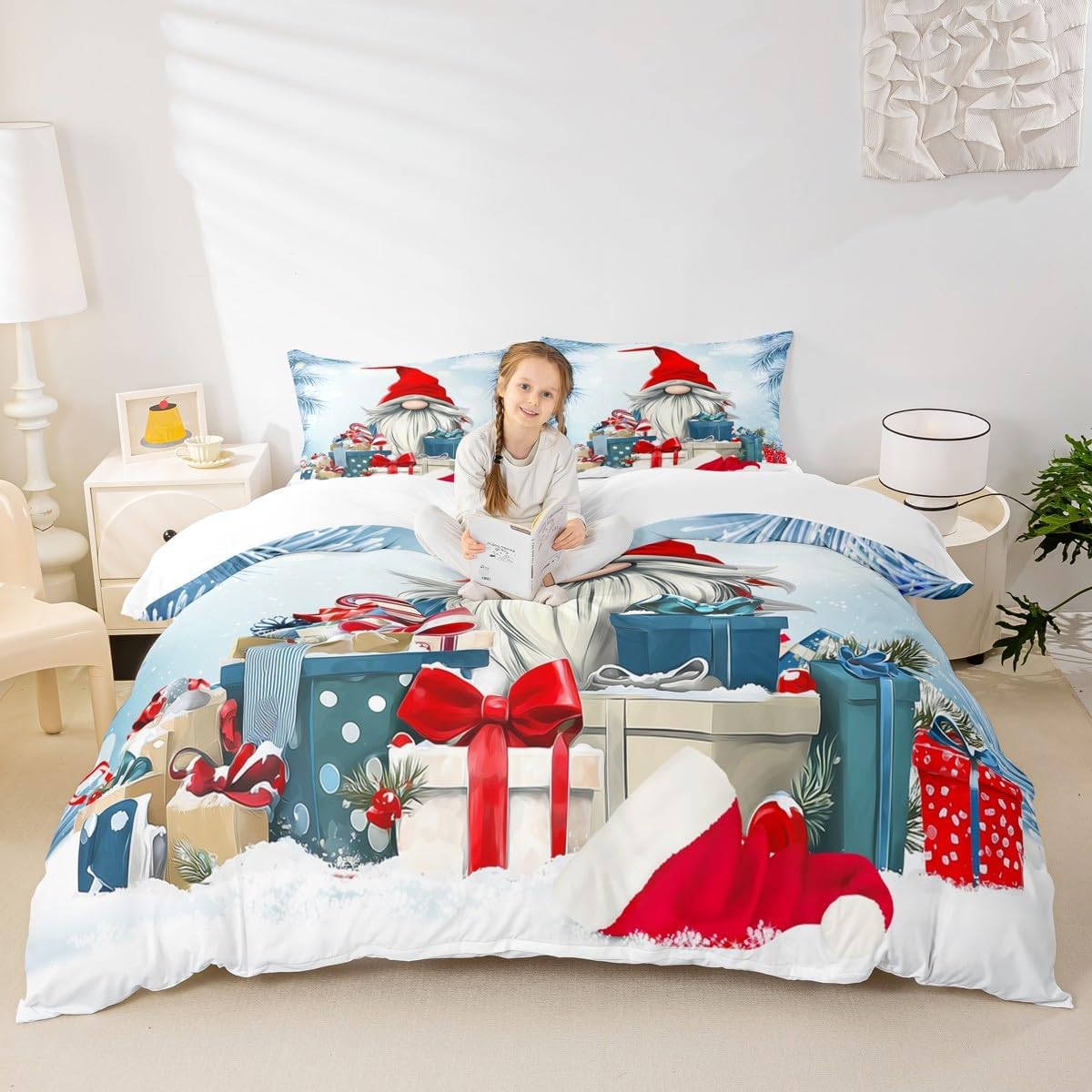Package Include: Duvet Cover and Pillowcase. High quality Duvet Cover 3D Pattern Bedding Set, simply decorating your rooms any time you want, bringing you fresh feel for year round use. Size Information: Twin size 2pcs duvet cover set: 1 Duvet Cover 68" x 90", 1 pillowcase 20" x 30". Without Comforter Full size 3pcs duvet cover set: 1 Duvet Cover 80" x 90", 2 pillowcase 20" x 30". Without Comforter Queen size 3pcs duvet cover set: 1 Duvet Cover 90" x 90", 2 pillowcase 20" x 30". Without Comforter King size 3pcs duvet cover set: 1 Duvet Cover 104" x 90", 2 pillowcase 20" x 36". Without Comforter Personalize your bedroom: Beautiful design and colorful print, makes your bedroom unique and brings you a wonderful dream. Washing instructions: Machine wash separately in cold water,hang dry, do not bleach. Occasion: The cute soft duvet cover bedding sets designed for Children ,Adult, Men, Women, Teens. This duvet cover set is also suitable for full seasons, Spring, Summer, Autumn and Winter. More Decor: Search our store to get more christmas theme, new year theme, autumn fall theme, any holiday theme, modern abstract, farmhouse rustic theme, simple pattern, garden flowers etc. home decoration, Warm Tips: 1. Please allow 1-3cm error due to manual measurement. 2. Actual color may vary from the color on your screen due to monitor color restrictions.
