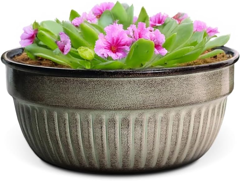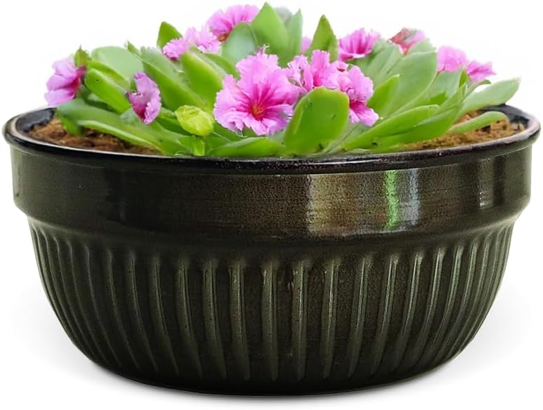 Headwind Robert Allen Glazed Ironstone Boutique Collection Cascade Bowl Plant Pot – Plum Color 8 Inch Pot for Indoor Plants - Planters for Indoor Plants - Ideal Succulent Planters