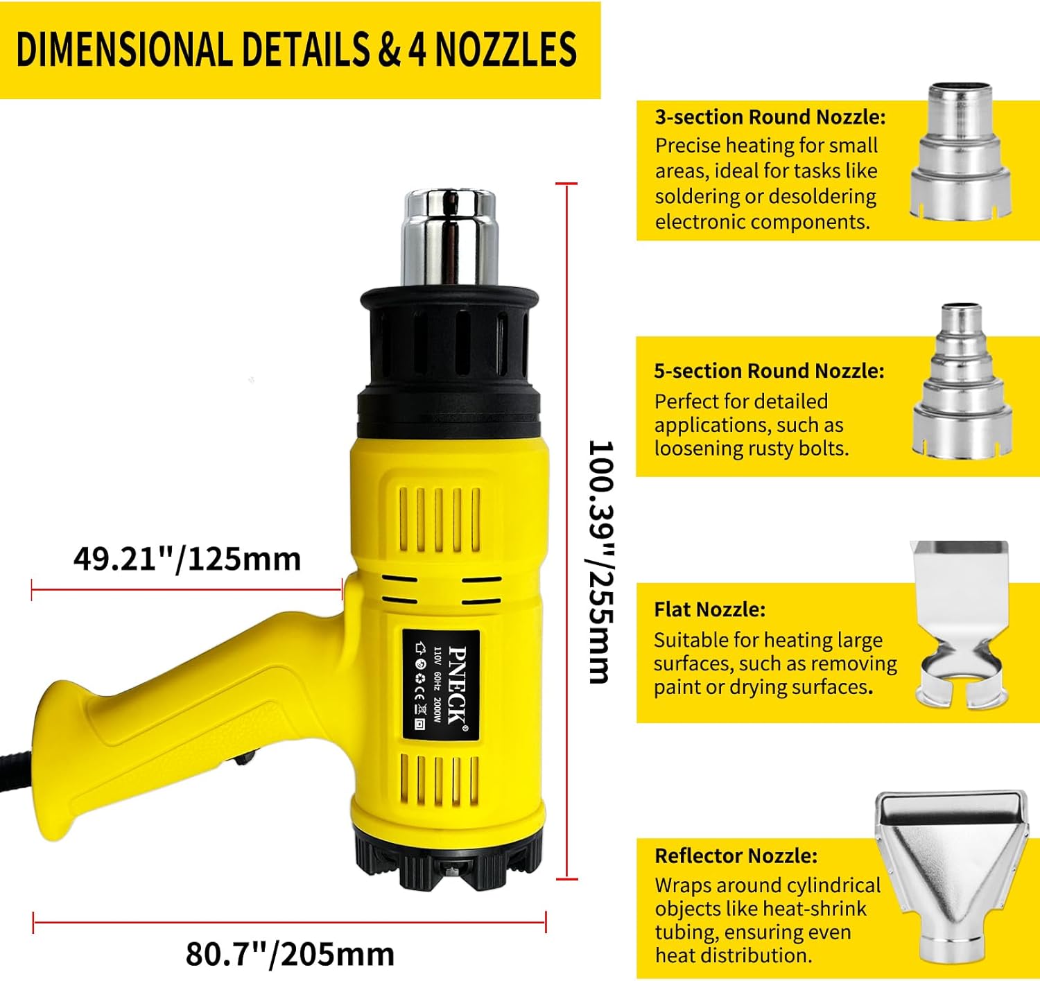• Precision Control: PNECK heat gun features an LCD display for accurate temperature and airflow adjustment, with built-in overload protection to prevent overheating, ensuring safe operation