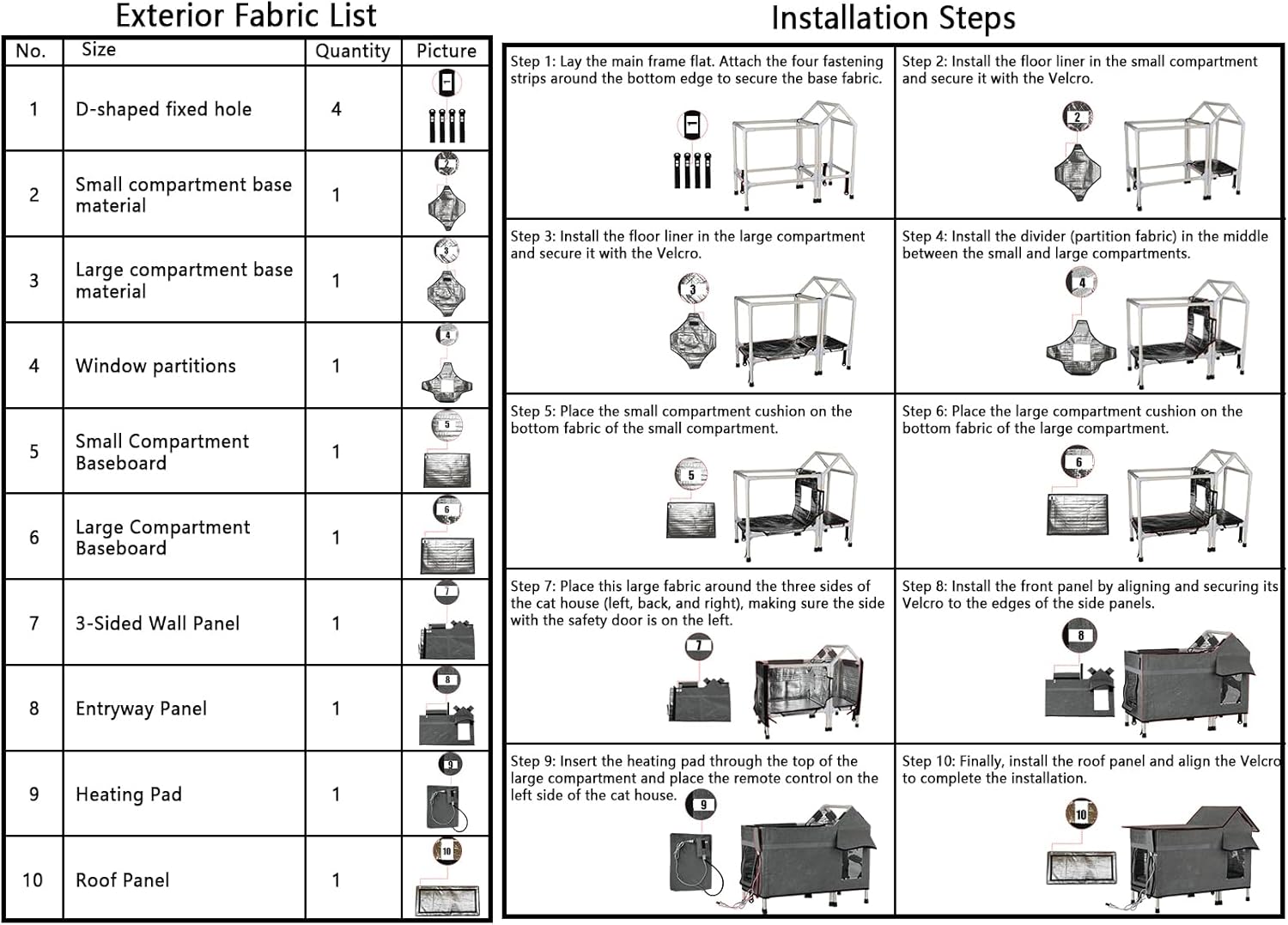 | Warranty Description | Under normal use, if structural breakage, workmanship defects, or other quality issues occur, we will provide a free replacement. This warranty does not cover damage caused by pets scratching, biting, or improper use. Please keep your proof of purchase. For warranty service, please contact our customer service. |