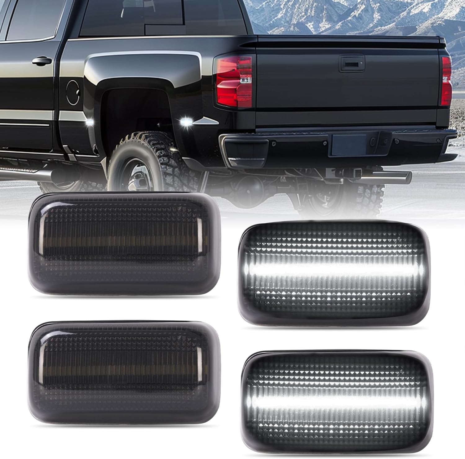 | Included Components | You will receive 4pcs side marker lights. 2PCS of Front Side Marker Lights (Amber LED) + 2PCS of Rear Side Marker Lights (Red LED) |