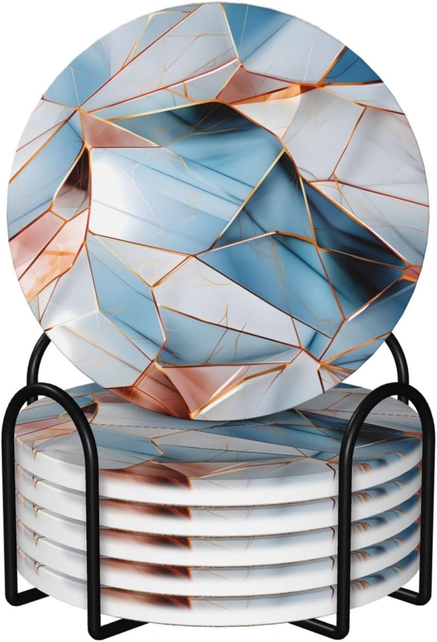 Absorbent Ceramic Coasters with Holder for Drinks Mugs Cups Mat Tabletop Countertop Office Home Decor SIZE: 4x0.3in, size for drinking glasses, coffee cups, white wine glasses, mugs, teacups, or other average-sized glass MATERIAL: Ceramic Stone + Wooden Backing DESIGN: Each cup coaster with single-side printing, vibrant color and vivid pattern no fading. FUNCTION: Absorb water or drink stains quickly, keep the table dry and clean; Anti Scratch cork backing attached to each coaster, effectively protects your desktop and countertops from heat and scratches, it will not adhere to the glass. Widly use for home, kitchen, living room, bar, hotel, restaurants, use the drink coasters on your dining table, coffee table or even for at the office. Decorative coaster is a funny housewarming, birthday, Valentine's Day, Halloween, Christmas gift for friends, family, relatives Tips: -Simply clean by wiping the coaster surface, deep clean can use warm water and a mild dishwashing detergent or stone-safe surface spray to clean. -The cork backing is separated from the ceramics and needs to be pasted -If you have any quality problems of bar coasters, please contact us by email, we will give you a full refund.