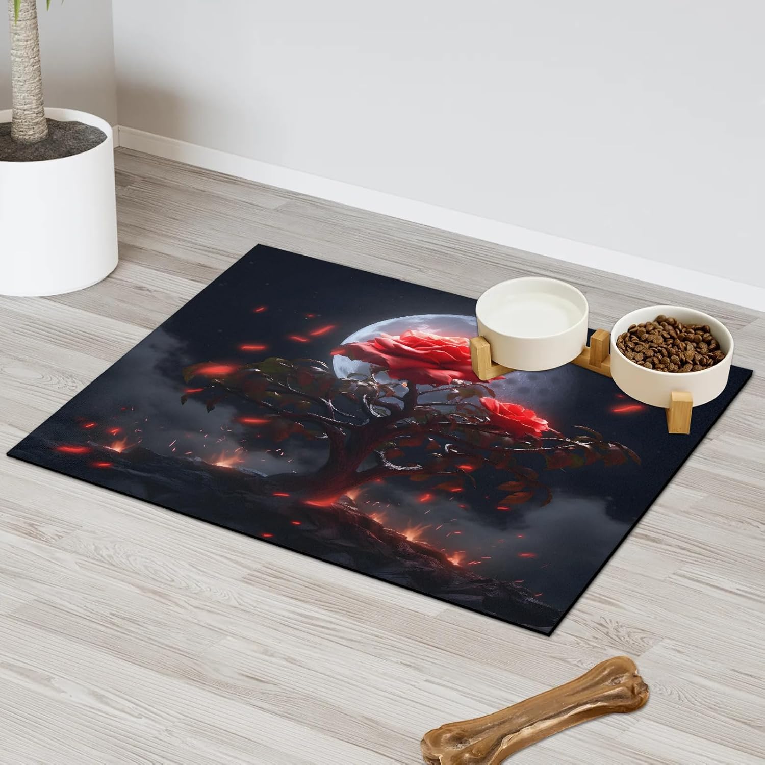 Pet Food Mat:Our company specializes in kitchen home products. The pet feeding mat provides the best decoration and protection for your floor. cat food mat measures 24 x 32 inches and is suitable for large dogs or puppies. The product specification is 1 pcs pet placemat. Dog bowl mat is made of diatomaceous earth material, with a water-absorbent backing to keep the floor clean.Dog and cat food mat can be placed under feeders, water bowls, litter boxes, etc., to prevent pets from wandering around. Dog food mat is washable by hand or machine and can be reused. It is suitable for use in homes, restaurants, kitchens, hotels, and business offices.