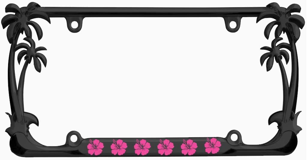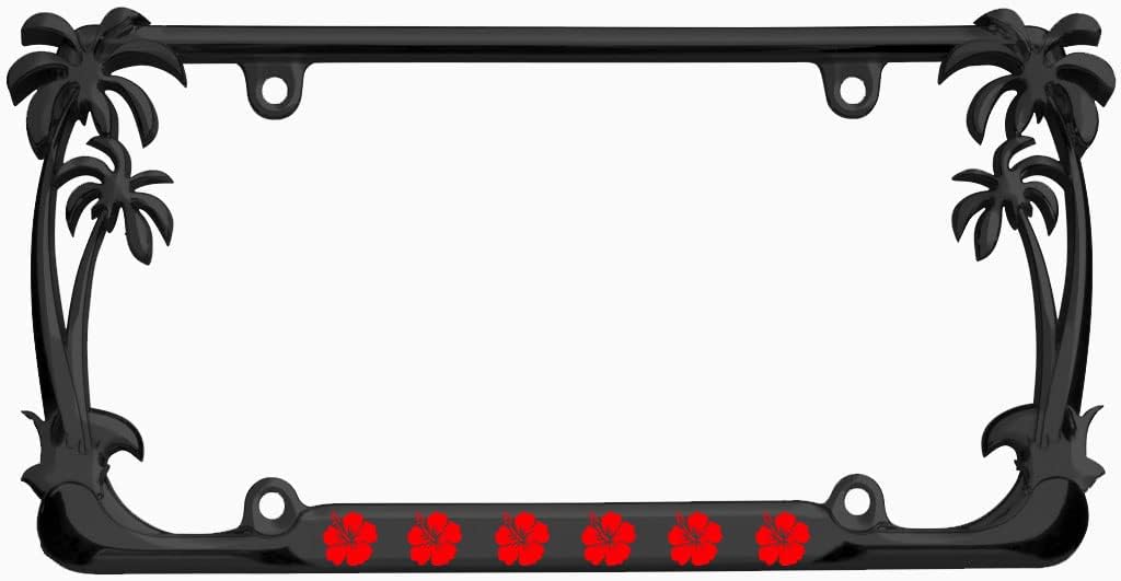 Hibiscus Flower Design Palm Tree Heavy Duty Metal License Plate Frame Auto License Plate Frame/Car Accessories (Black/Turquoise)