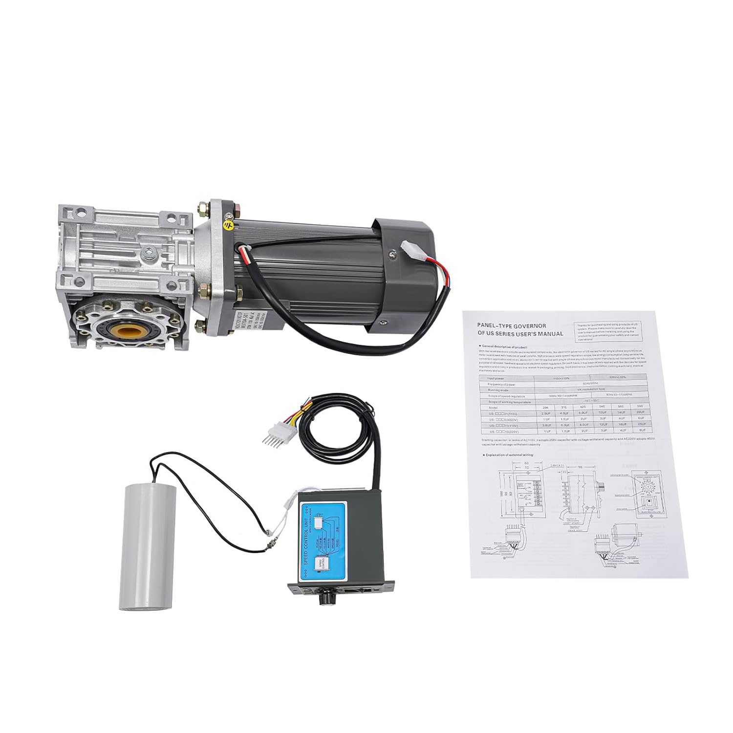 SpecificationsMaterial: Aluminium Alloy, 40cr Alloy SteelProcess: Die Casting, Heat Treatment, NitridingColor: Silver, BlackStyle: ModernMotor Type: AC Motor Mount Type: Free StandingPower Source: Corded ElectricVoltage: 110V Power: 370WNoise: About 60dBCapacitance: 45μFRated Torque: 65 NMMotor Speed: 50HZ 90-1350r/min, 60HZ 90-1650r/minController Output Speed(After Deceleration): 27r/minWorking Temperature: -10°C-40°C/14°C-104°FReduction Ratio: 1:50Capacitor Wire Length: 18cm/7.09inSpeed Controller Size: 10*9*6cm/3.9*3.54*2.4inReducer Size: 14.4*12*8.5cm/5.67*4.72*3.35inMoter Size: 10.4*10.4cm/4.09*4.09inOutput Aperture Diameter: 2.5cm/0.98inPackage Size: 35.5*15*10cm/13.98*5.91*3.94inGross Weight: 9.6kg/21.16lbsNet Weight: 9.2kg/20.28 lbsPackage Included1*Gear Motor1*Speed Controller1*English Manual