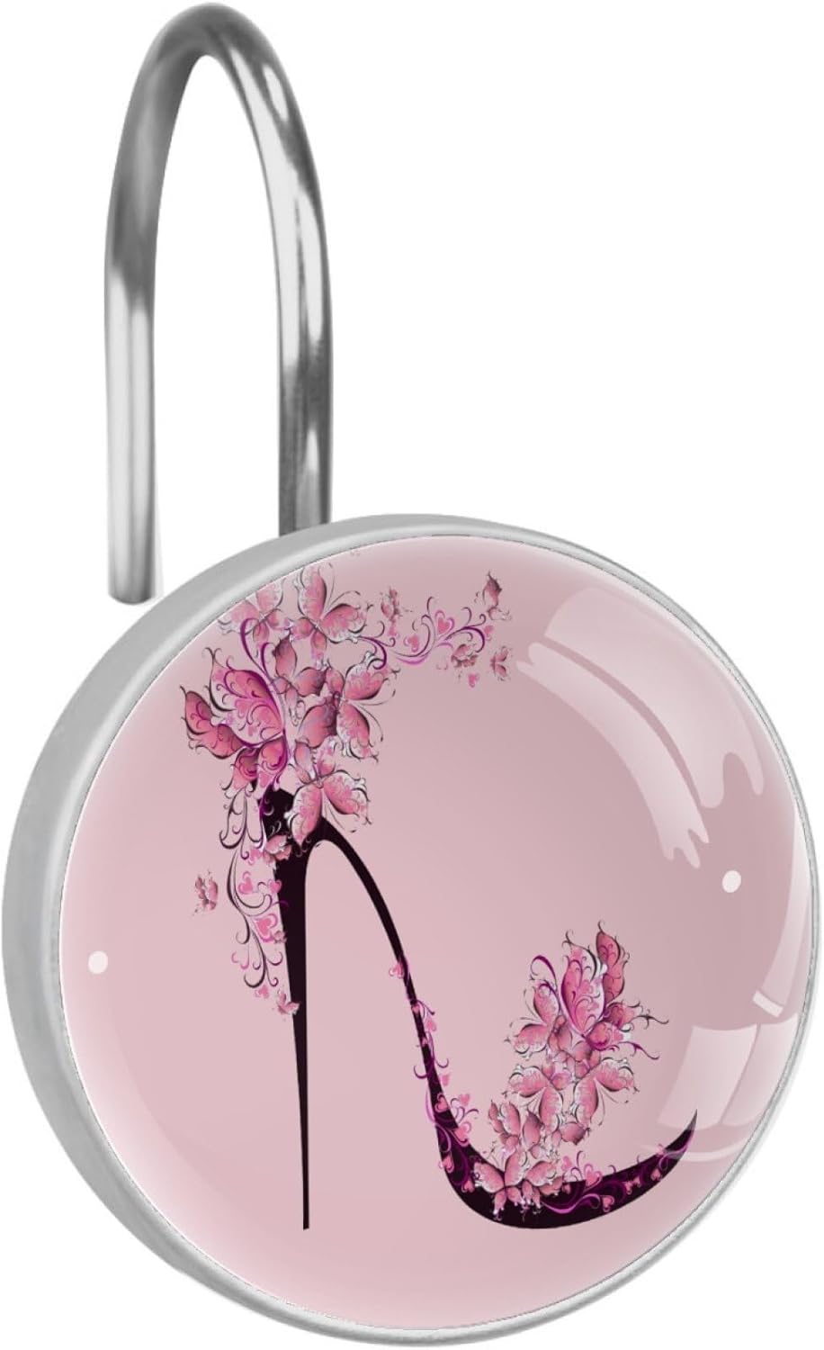 Decorative Shower curtain hooks will decorate your bathroom with fresh effect; unique patterns have aesthetic look, decked out graceful & glamorous appearance to any space, creating a festive mood! Durable and long lasting design that won¡¯t detach or break when moderate stress is put on the curtain. The shower curtain ring is easy to install, just pass through the hole on the curtain and then hang it to the shower rod. The bathroom curtain hooks fit shower curtain rods with standard size on the market and suitable for most color rods and curtains in different styles. This set of 12 durable hooks attach easily to any standard shower curtain, liner, and rod system to keep the curtain securely attached and evenly draped. Perfect for your master, guest, or family bathroom.Features:Material: Stainless steel hooks, glass surfaces, patterned paper and resin side edgesQuantity: 12 x Shower Curtain HooksWeight: 0.85 lb shower curtain ringsAvailable for 0.3"-1.1" (8-28mm) diameter rod.Easy to through existing holes and hang over shower rod.Durable Quality & Attractive Appearance.Cute Bathroom Accessories: Ideal gift for Christmas, holidays and anniversary.Slide Easily and Smoothly: Hangs both shower curtain and liner for easier handling.