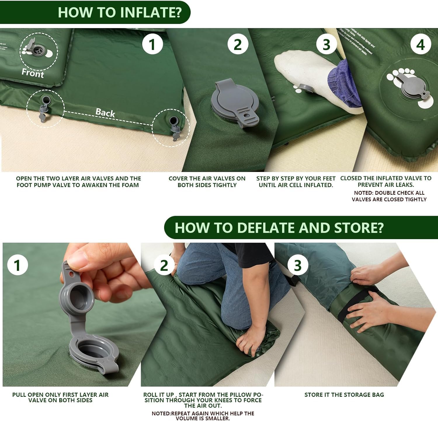 | Additional Features | Built-In Pillow, Built-In Pump, Compact,Durable,Comfortable, Easy to roll it up ,keep air in all night, Inflatable, Insulated,Strong Support |