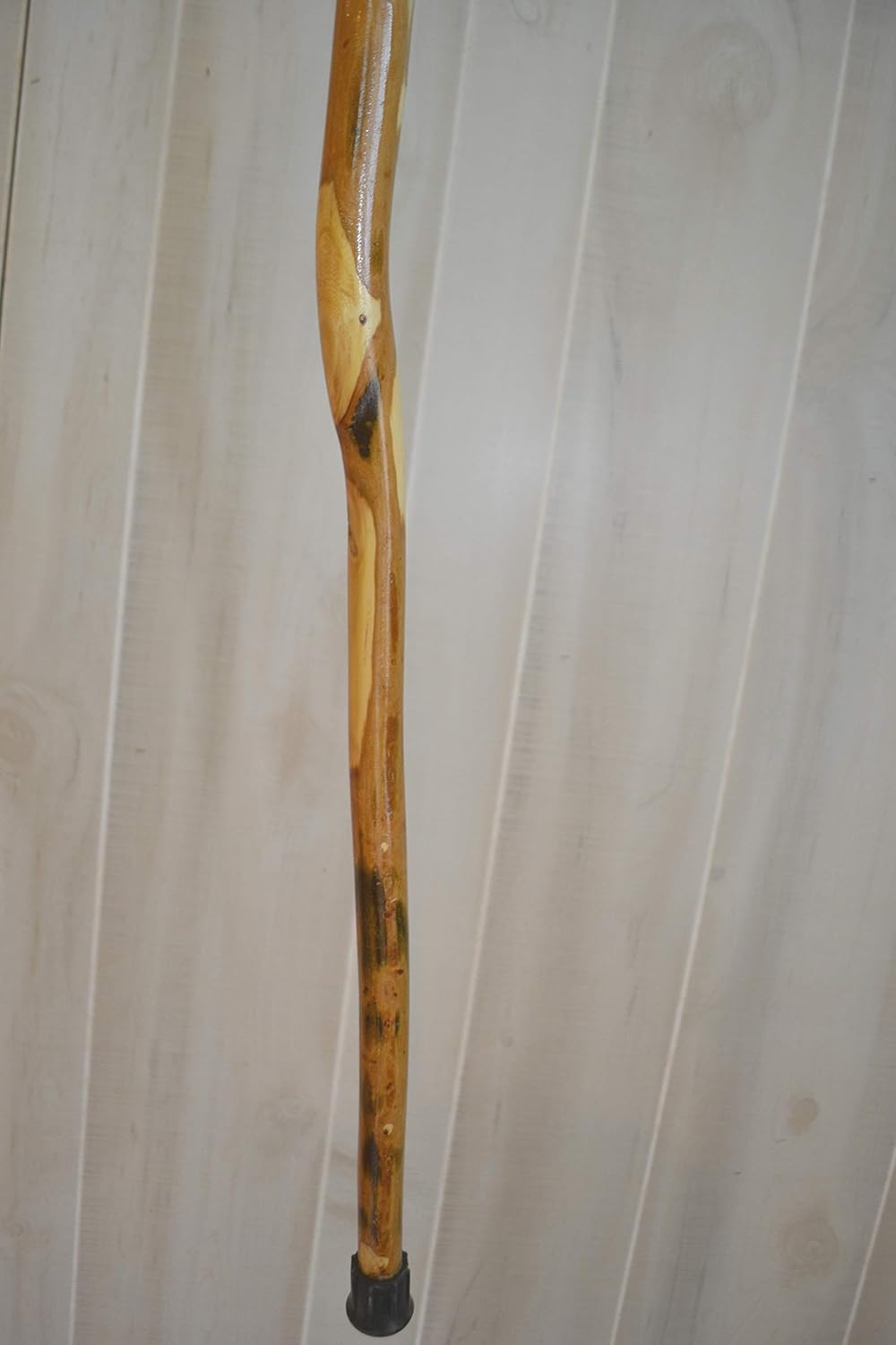 Up to 60" Kiln Dried Elm Hiking Stick with Hand Carved Wood Spirit. This staff has a leather strap above the handle and a quality rubber stopper on the tip. These are made to order so some grain pattern will be different than the one shown. Made in the USA by master carver David Egesdal. Using walking sticks and canes are excellent ways to support one’s self while walking through the town or out in nature. Carved sticks and canes are functional and also make great conversation pieces. Use your stick to overturn leaves on the trail, as support for a weaker leg, for balance while going up and down hills, or as a decoration piece in your home. These functional pieces of art make the perfect gift for that “hard to buy for” person in your family or life.