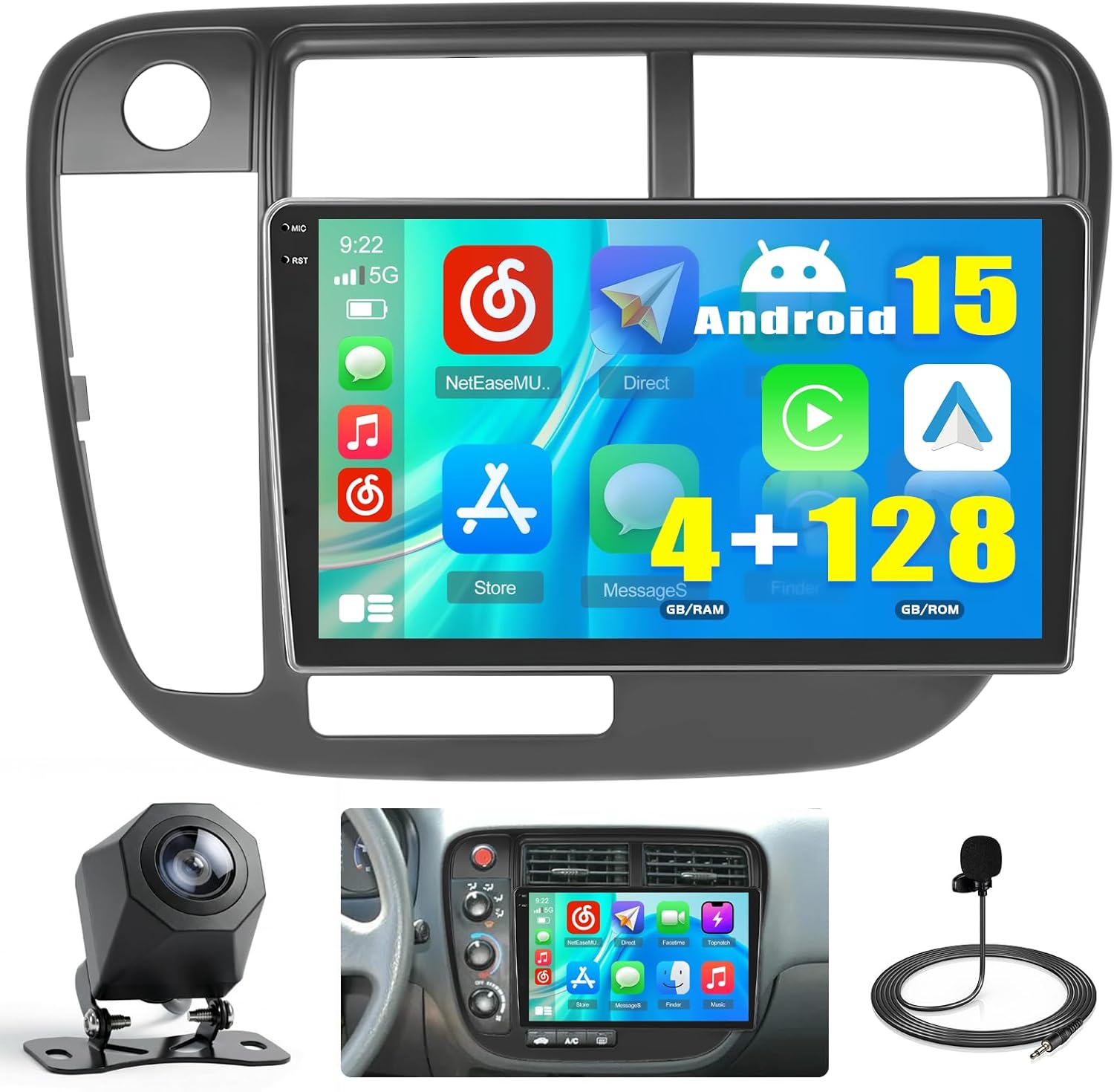 | Additional Features | 4+128GB, Incell Touchscreen, Carplay, Android Auto, Bluetooth, GPS Navigation, WiFi, Bluetooth, FM RDS, EQ,Dual USB |