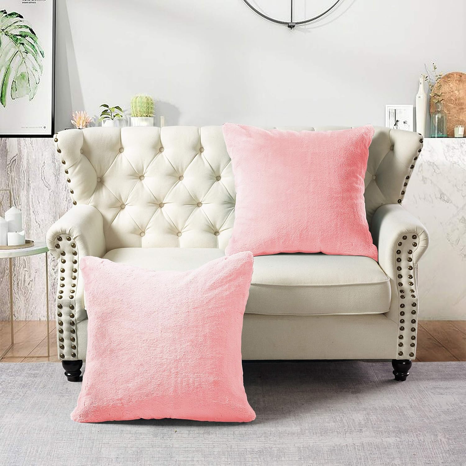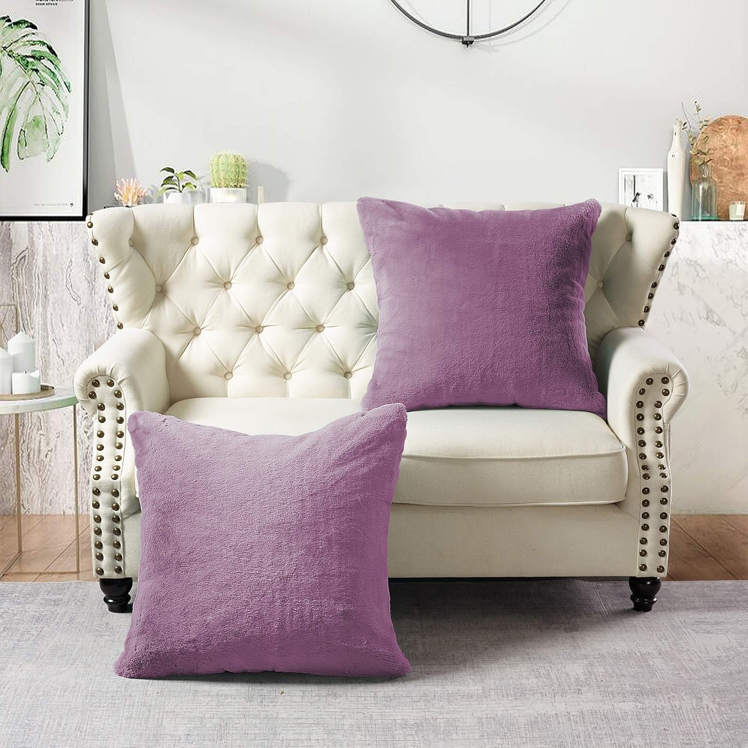 Ultra-Plush Faux Fur for Luxurious Comfort: Indulge in the ultimate cozy experience with our Heavy Faux Fur Pillow Covers, Made from premium-quality faux fur, these covers offer a soft, velvety texture that mimics real fur, providing a lavish feel to your living space, Perfect for adding a touch of elegance to your sofa, bed, or chair. Generous 2-Piece Set in Versatile 26"x26" Size: This set includes two generously sized 26"x26" pillow covers, ideal for standard throw pillows; The versatile size ensures compatibility with most pillow inserts, making it easy to refresh your home decor; Whether for your living room, bedroom, or patio, these covers deliver both style and functionality. Durable Construction for Long-Lasting Use: Crafted with reinforced seams and high-quality materials, these pillow covers are designed to withstand daily use without losing their shape or softness; The durable fabric resists shedding and fading, ensuring your pillows stay beautiful and plush for years to come. Easy to Clean and Maintain: Our Heavy Faux Fur Pillow Covers are machine washable, making them effortless to clean and maintain; Simply toss them in the washing machine on a gentle cycle, and they’ll come out looking as good as new; No special care required, saving you time and effort. Perfect for All-Season Decor: With their neutral design and timeless appeal, these faux fur pillow covers seamlessly blend into any decor style, from modern to rustic; The heavy-weight fabric provides warmth during colder months, while the breathable material ensures comfort year-round; Elevate your home’s aesthetic with this versatile and stylish addition.