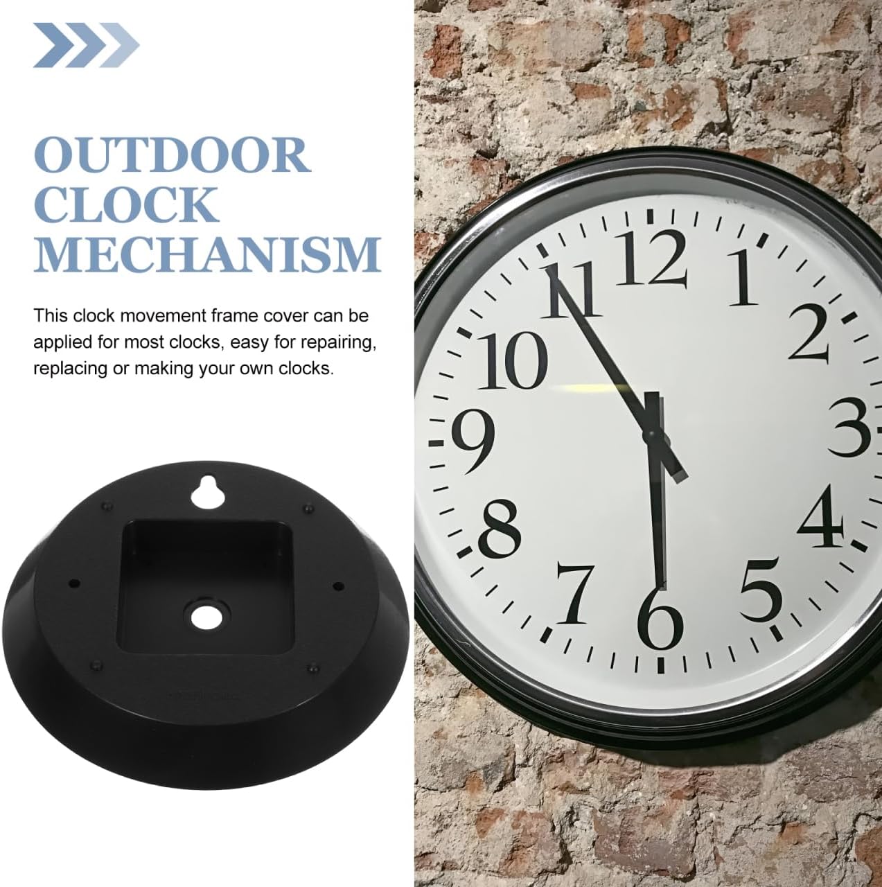 Package List 2 x clock mechanism covers Characteristics -Material:Plastic clock frame repair kit - Color: Black plastic clock frame -Inner diameter: 5.80cm/2.28inch clock maintenance kit - Size: 13.80X2.00X2.00cm/5.42X0.79X0.79in clock accessories -The clock movement cover adopts plastic material with texture and durability, withstand plastic clock back cover. -Light weight, easy to install, suitable for clock movement replacement work, these clock mechanism cover can bring you huge convenience clock back cover replacement. - workmanship and sturdy structure can let this clock mechanism cover have practicality and durability, you can use rest assured clock mechanism parts. -You can make your own clock, and enjoy DIY fun, also suitable for clock repair shop to use wall clock parts. -Simple style clock movement cover can match various colors, patterns, shape clock mechanism, of multiple uses plastic clock mechanism cover.Goods Descriptionmovement assembly kit Classic color, simple structure, light weight, easy to install, largely save your time and efforts, for mechanism of wall clock, mute clock, frameless clock, and more.outdoor clock mechanism This is a clock movement cover adopting plastic materials, durable, withstand .clock frame part texture and durability, serve you better and longer