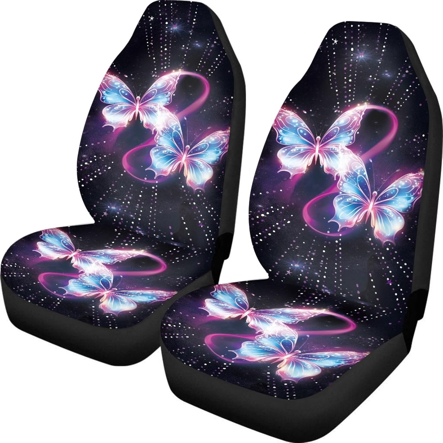 Package Included: 2 x Car Seat Covers for Front Seats Only Universal Fit Applicable to most car seats in the market,but Not for use on seats with integrated airbags,seatbelts or armrests Features: * High-quality fabric: breathable and comfortable,wear-resistant,easy to clean * Update the appearance of old or dirty seats,refresh your interior look * Prevent splitting, stains, fading, dirt and pet hair * Easy to install Instructions: Step1: Place the seat cover over the top of the seat and pull gently towards the base of the seat Step2: Locate the fastening flap on the interior of the cover and push it through the gap in between the top and bottom portion of the seat until it has passed through to the back of the seat. Step3: Stretch the bottom of the seat cover over the bottom seat cushion until completely covered. Step4: Move to the back of the seat and fasten the elastic hook straps into the holes of the pass through flap to secure the seat cover position