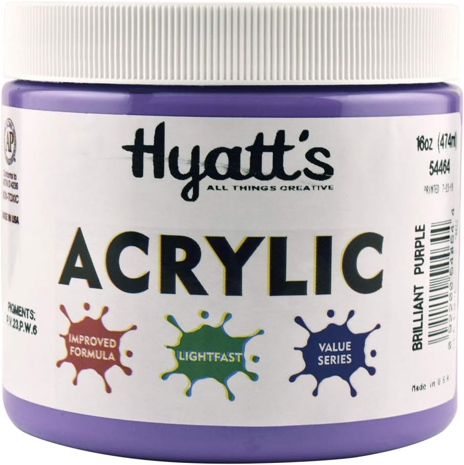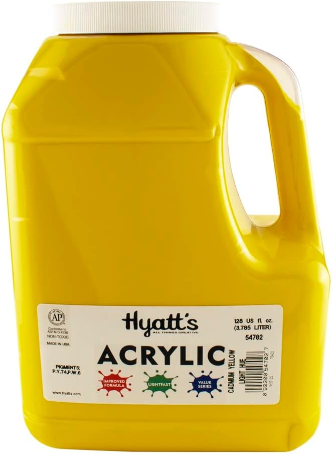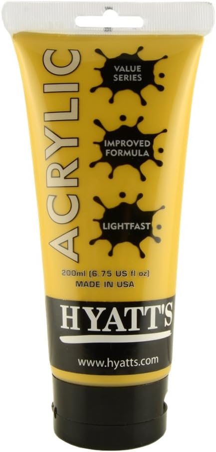 Hyatt's Acrylic in Titanium White is designed especially for the student or beginner painter. It is an artist's quality paint at a value price. This acrylic features a high pigment load, brilliant color and saturation, and it dries to a low gloss finish. Made in the USA. 32 fluid ounce plastic jar with wide mouth opening.