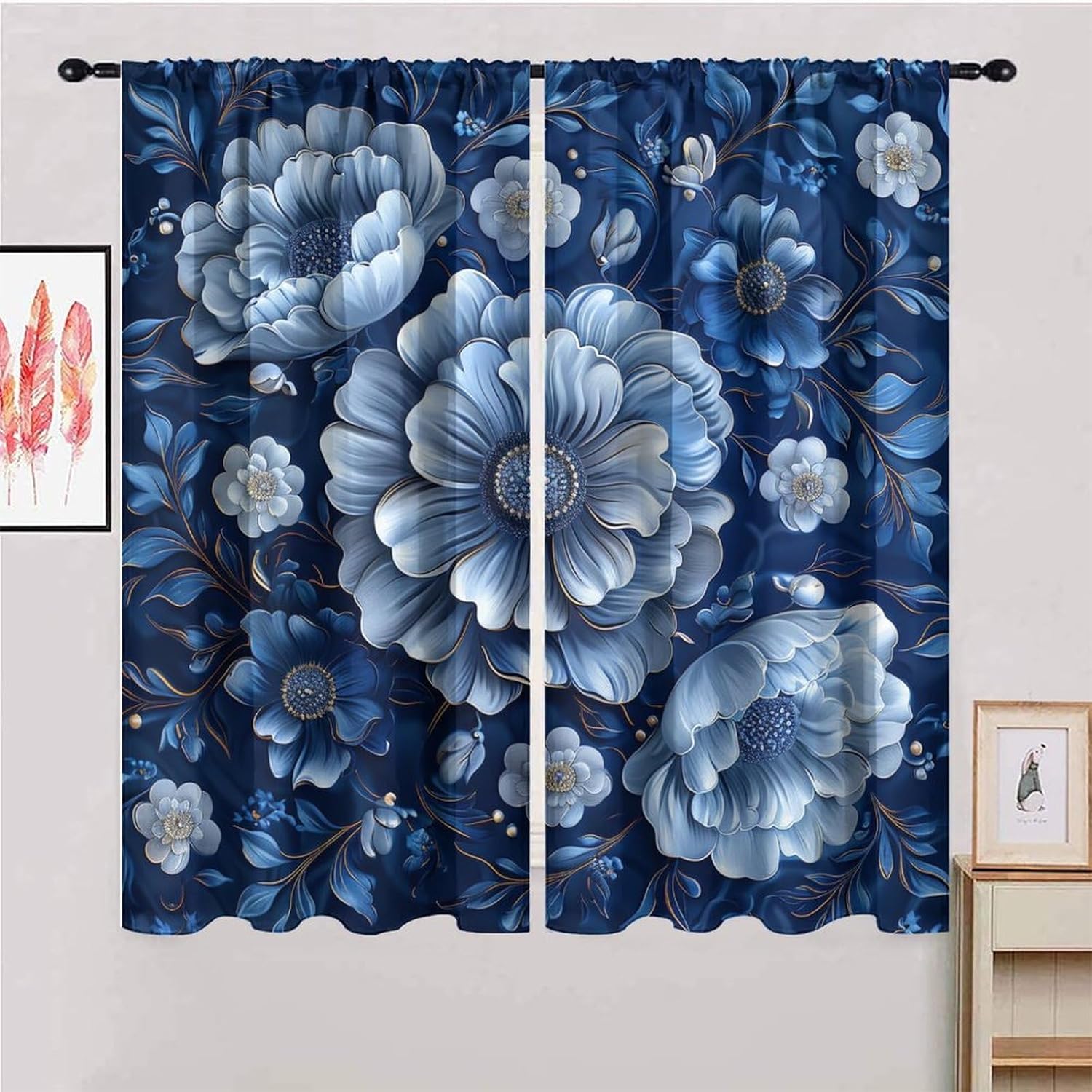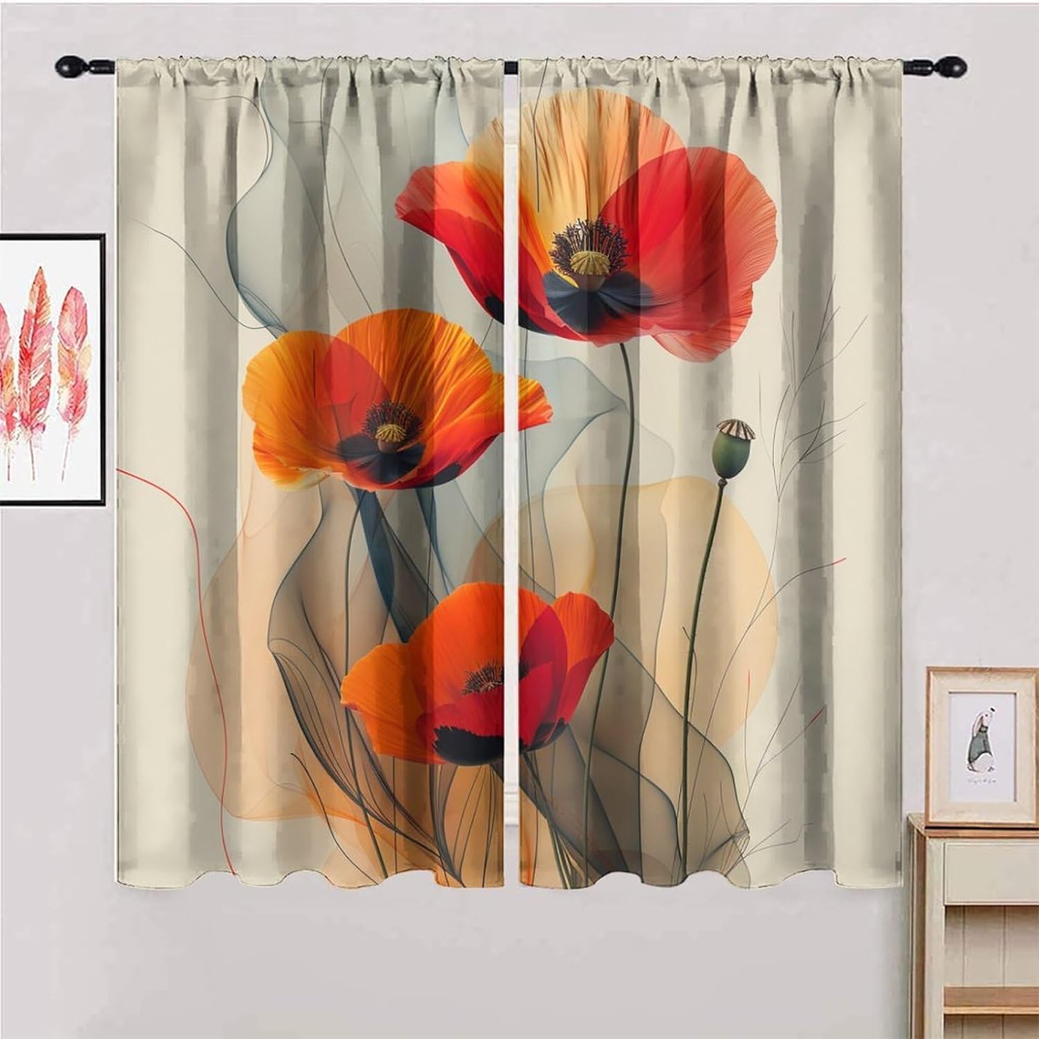 Our curtain panels will add a touch of color to your home, making your room look stylish, lively and warm! These curtains are suitable for any style of home, whether traditional or modern. UV protection, good quality. Suitable for living room, bedroom, etc. They can add a touch of luxury and sophistication to your home! Tips: Don't worry if these curtains are a little shorter than your windows. You can hang these curtains with rings and hooks (these are not included). Adjustable height, up to 3 inches. Hook space distance is about 4-6 inches