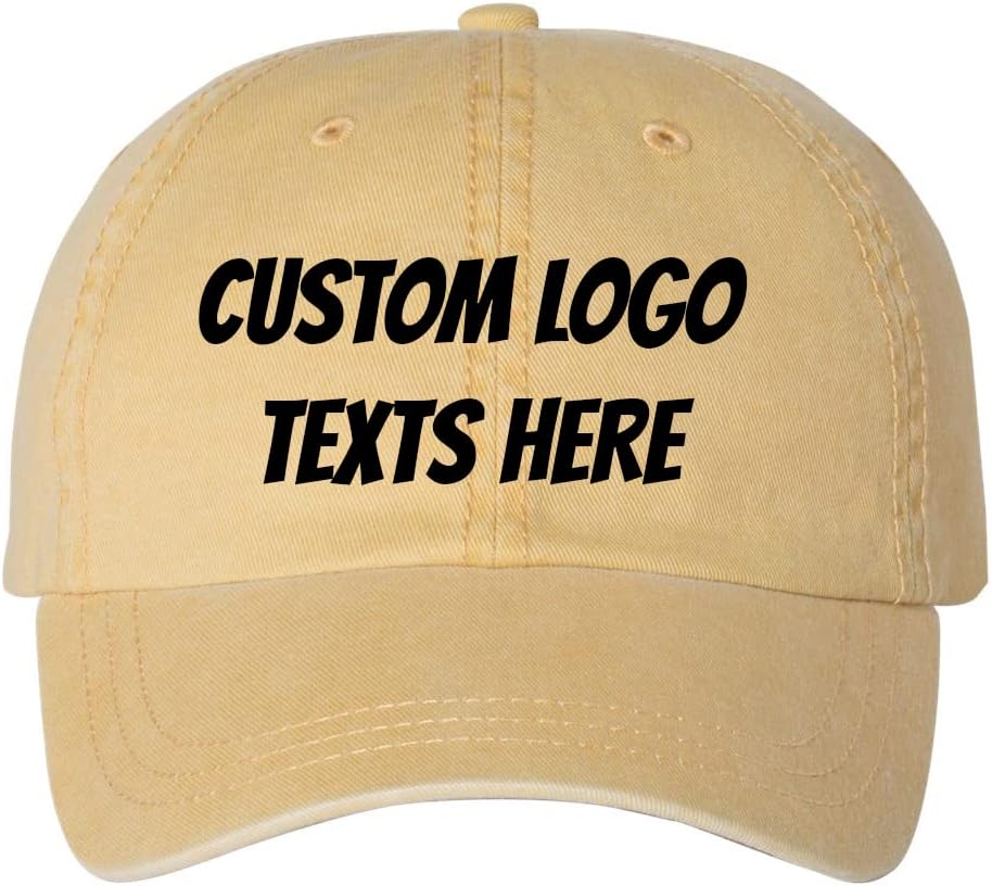 Custom Embroidery Design Your Own Logo/texts/monogrammed stitching baseball caps Pigment Dye baseball caps One size fits all for adults 100% cotton