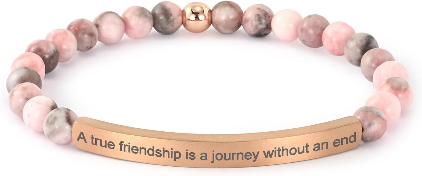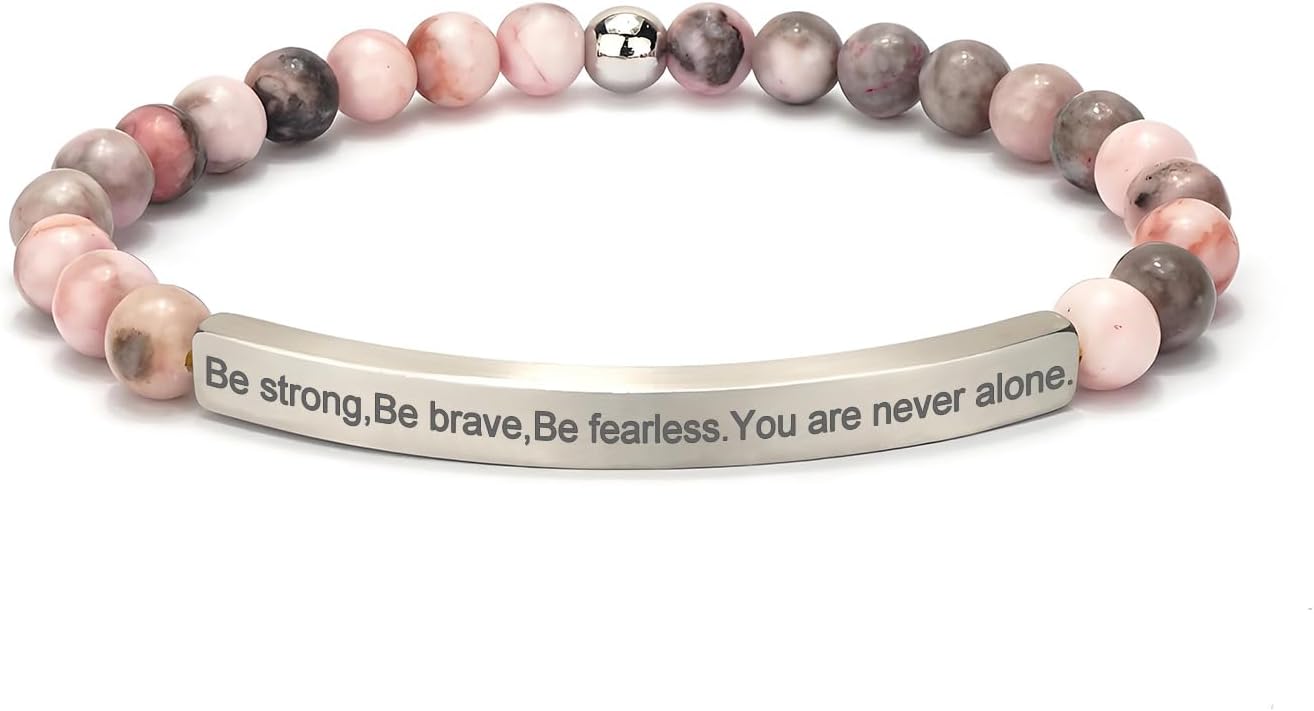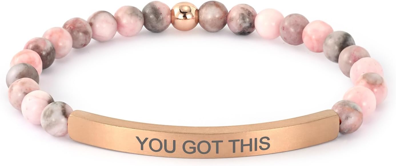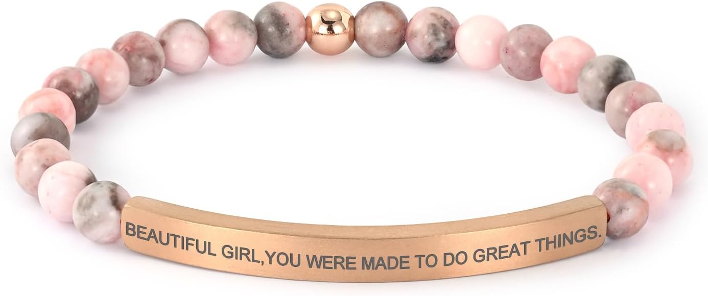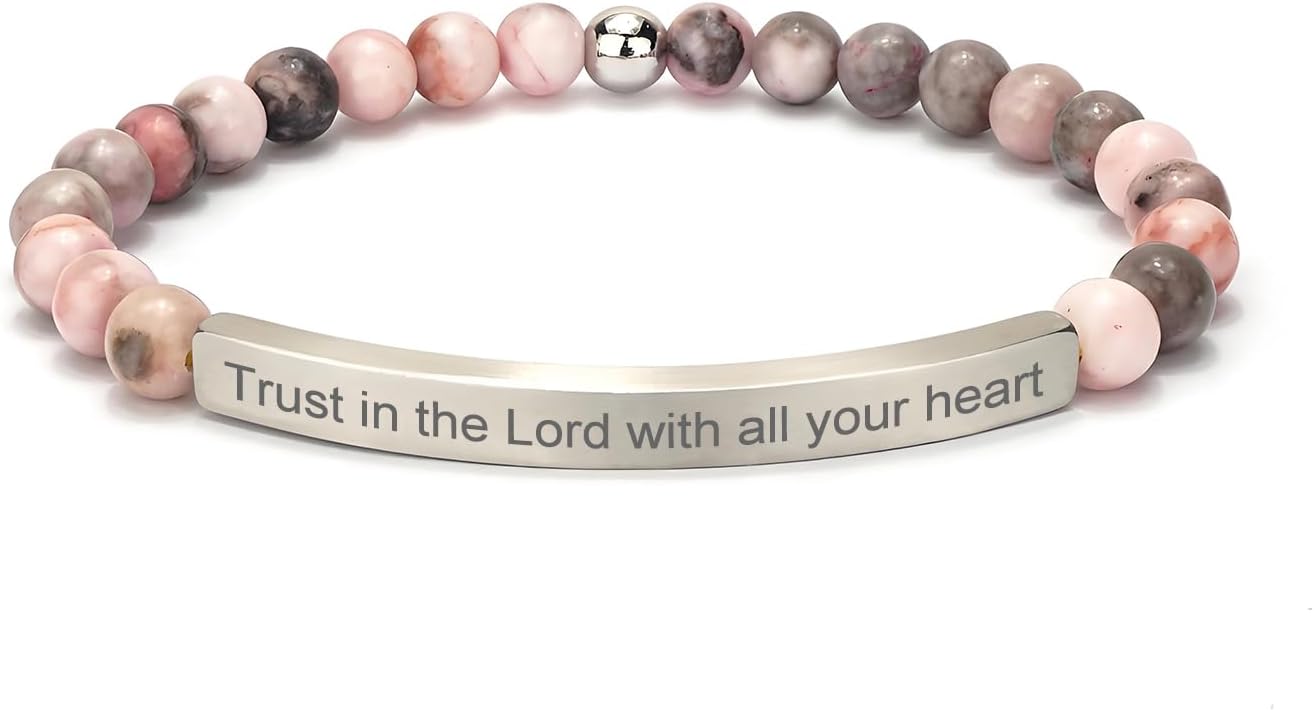 Celebrate faith, strength, and love with this Inspirational Christian Bracelet for Women. Beautifully crafted with 18K gold-plated stainless steel and Pink Zebra Jasper natural gemstone beads, this bracelet is more than jewelry — it’s a reminder of inner peace and divine strength. Each bead is hand-selected for quality and energy, symbolizing courage and harmony. The Pink Zebra Jasper stone is known as a heart chakra gem, believed to promote balance, calmness, and emotional healing. The gold bar features a Bible verse of faith and encouragement, making it a meaningful keepsake for women who draw strength from prayer and belief. The bracelet’s 6.5-inch circumference offers a comfortable fit for most wrists. Durable and long-lasting, it’s made with premium 316L stainless steel and upgraded dual-thread craftsmanship to ensure it stays beautiful through daily wear. Whether as a gift for Mom, Sister, Wife, Girlfriend, or Friend, this bracelet conveys love, hope, and faith. Perfect for Christmas, birthdays, graduations, Mother’s Day, Valentine’s Day, or any special occasion, it’s a touching way to remind her: She is strong, loved, and never alone.