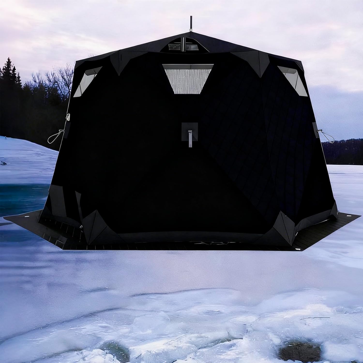 ▶▶ WANT TO ENJOY THE WARMTH OF SPRING FISHING AMIDST THE SNOW AND ICE?▶ Your ice fishing gear shouldn't be complete without this pop-up ice fishing tent that opens in a second.❆ Specifications:Name: Winter Fishing Tent / Pop-up Ice Fishing TentFabric: 420D ClothFilling: Hollow Cotton 220g/m²Lining: 210D Oxford ClothSupport Rods: 11mmAccommodates approximately 6-10 peopleTent Inner Diameter: Approximately 330cm diagonallyTent Height: Approximately 180cm inside heightUsable Area: Approximately 4.4 square metersStorage Dimensions: Approximately 120*25*25cmWeight (including packaging): Approximately 20kg❆ Package Includes:1* Fully insulated ice fishing tent1* Winter fishing mat1* Portable storage bag6* Ice spikes6* Windproof ropes❆ Notes:● After use, thoroughly clear any debris or snow from the interior. ● Fold and store the tent carefully to avoid damage from rough handling.● Exercise caution when moving inside to avoid puncturing the tent with sharp objects. ● When selecting a location, please ensure the ice is sufficiently thick and solid, avoiding cracks and drift ice areas. ● Ensure the tent structure is stable during setup, and secure guy lines and stakes firmly to prevent collapse or wind displacement.