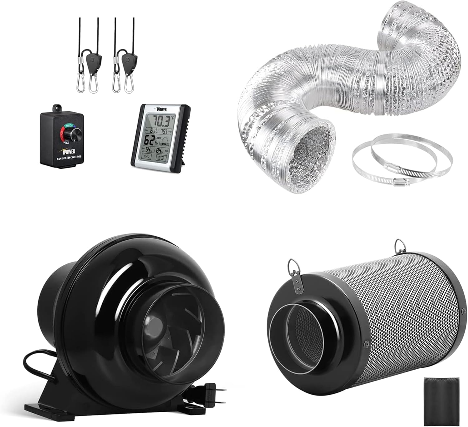 iPower 6" 442 CFM inline fan filter 25' ducting combo with variable Speed controller & rope hanger for grow tent ventilation