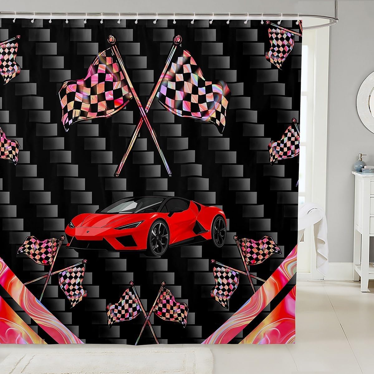 Welcome to our storeOur shower curtain, lovely decorate your bathroom, a fashionable and beautiful bath curtain to your friends or relatives; the shower curtain lets you enjoy a comfortable every time you bathFeatures:Designer Artwork: Chic personalized design shower curtain; not an ordinary shower curtain you can find anywhere; unique; genuine; funMaterial: Made of polyester fabric with weight at the bottom, waterproofEach curtain contains 12 c shaped hooks and is easy to install; three generous size is sure to fit most bathtubs and shower stalls; machine washable and dries fastRange of size:72" x 72"72"x 78"72"x 84"Notice:1 Machine wash , hand wash or wipe with a damp cloth. 2 There will be a slight difference in product sizes due to manual measurement